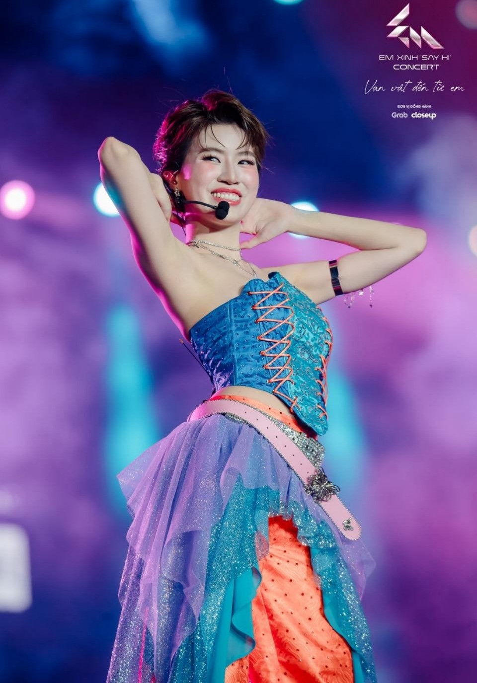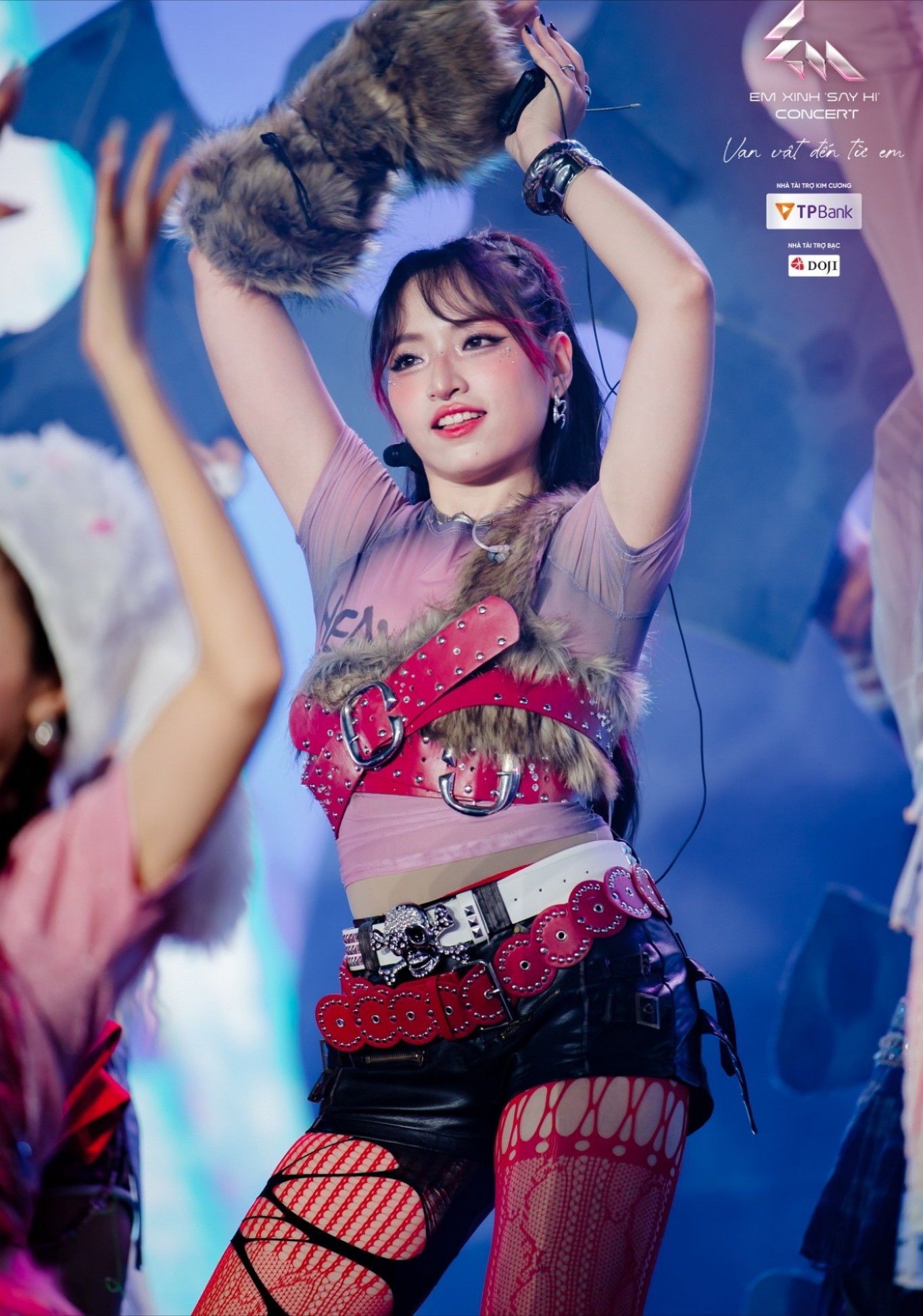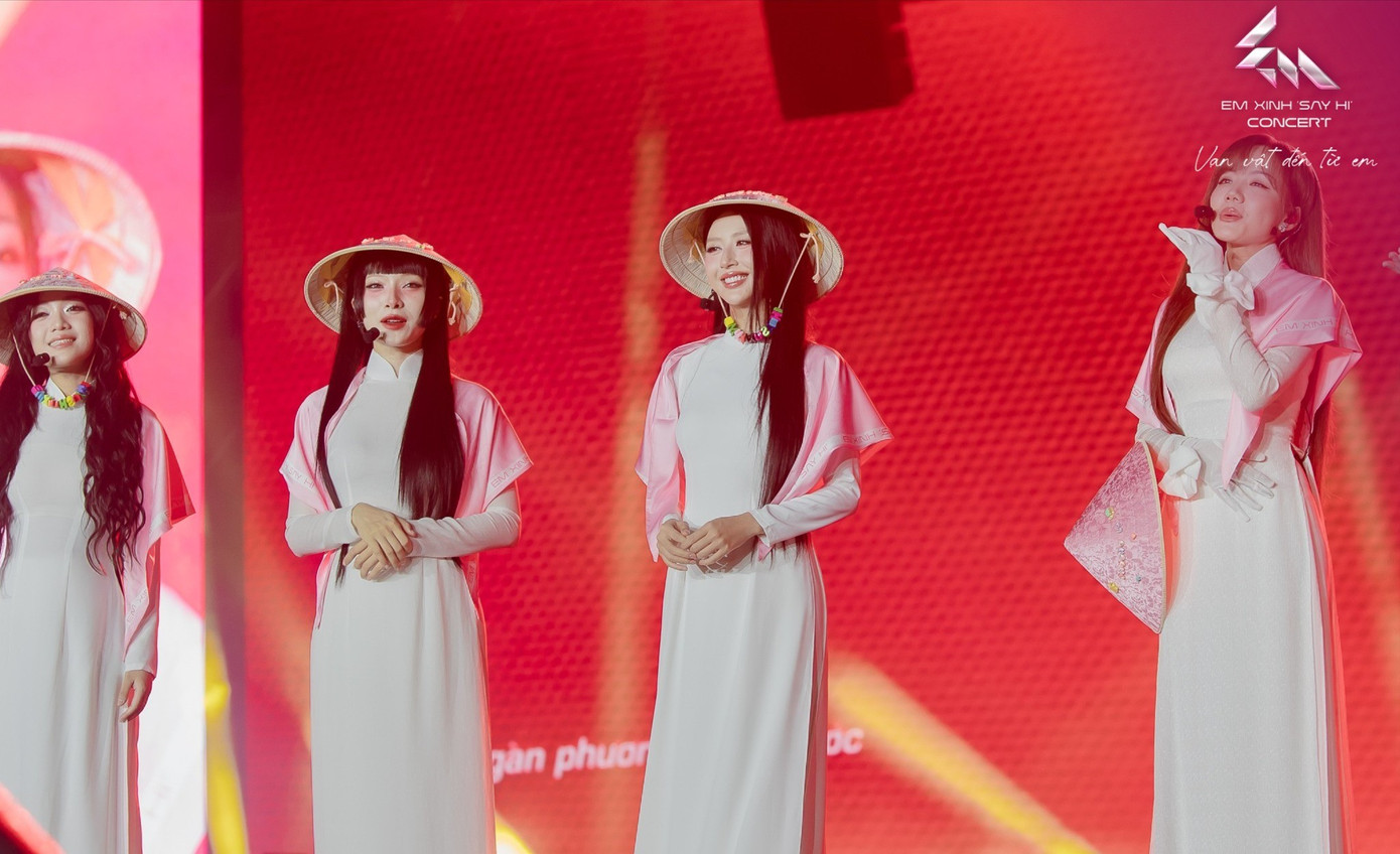 Concert Em xinh say hi diễn ra tối 11/10 tại sân vận động Mỹ Đình, Hà Nội, thu hút hàng vạn khán giả. Toàn bộ khu vực khán đài, dưới sân được phủ kín, tạo nên biển hồng lightstick cổ vũ cho 30 nghệ sĩ.