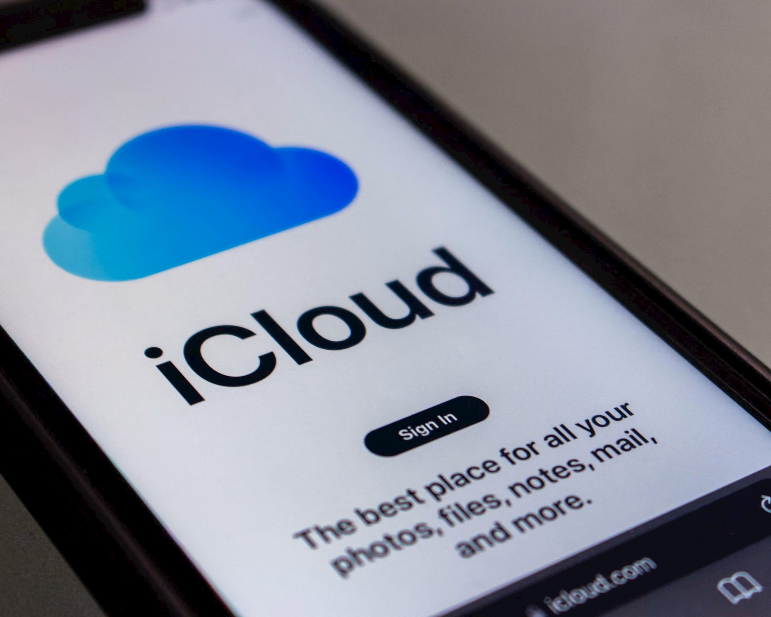 Trang web chính thức của iCloud.com hiển thị trên màn hình iPhone của Apple. Ảnh minh họa: The Guardian