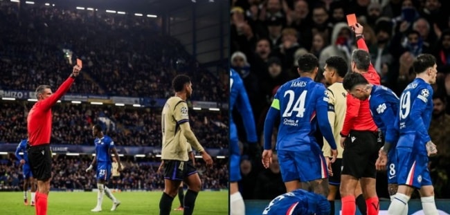 Khó khăn chồng chất khó khăn cho Barcelona khi họ chỉ còn chơi với 10 người ở phút 44. Đội trưởng Ronald Araujo đã có một ngày thi đấu đáng quên khi nhận liên tiếp hai thẻ vàng, một vì lỗi phản ứng và một sau pha vào bóng nguy hiểm với Cucurella, và bị truất quyền thi đấu. Mất người, hàng thủ Barca hoàn toàn sụp đổ.
