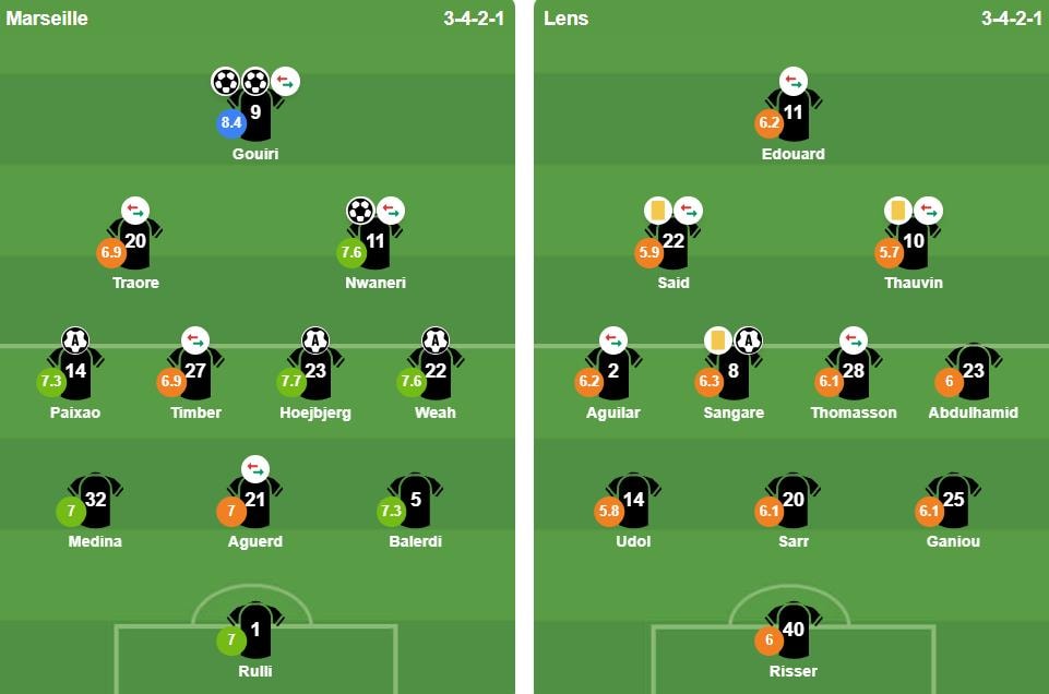 Bước sang hiệp hai, dù Lens đã thực hiện nhiều thay đổi nhân sự với sự góp mặt của Adrien Thomasson và Florian Sotoca, nhưng họ vẫn không thể xuyên thủng hệ thống phòng ngự kỷ luật của Marseille. Phút 75, kịch bản trận đấu chính thức được định đoạt. Từ đường chuyền dọn cỗ của Timothy Weah, Amine Gouiri một lần nữa có mặt đúng lúc để hoàn tất cú đúp, nâng tỷ số lên 3-0.