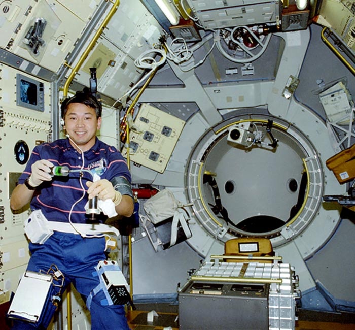 Tiến sĩ Eugene H. Trinh trong khoang vi trọng lực của chuyến bay STS-50