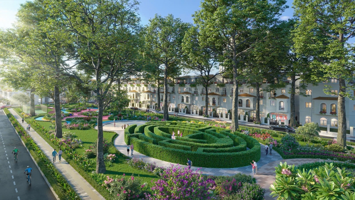 Hệ thống vườn hoa tại phân khu Địa Trung Hải được quy hoạch thành các không gian xanh liên hoàn, vừa tạo điểm nhấn cảnh quan vừa phục vụ sinh hoạt hằng ngày