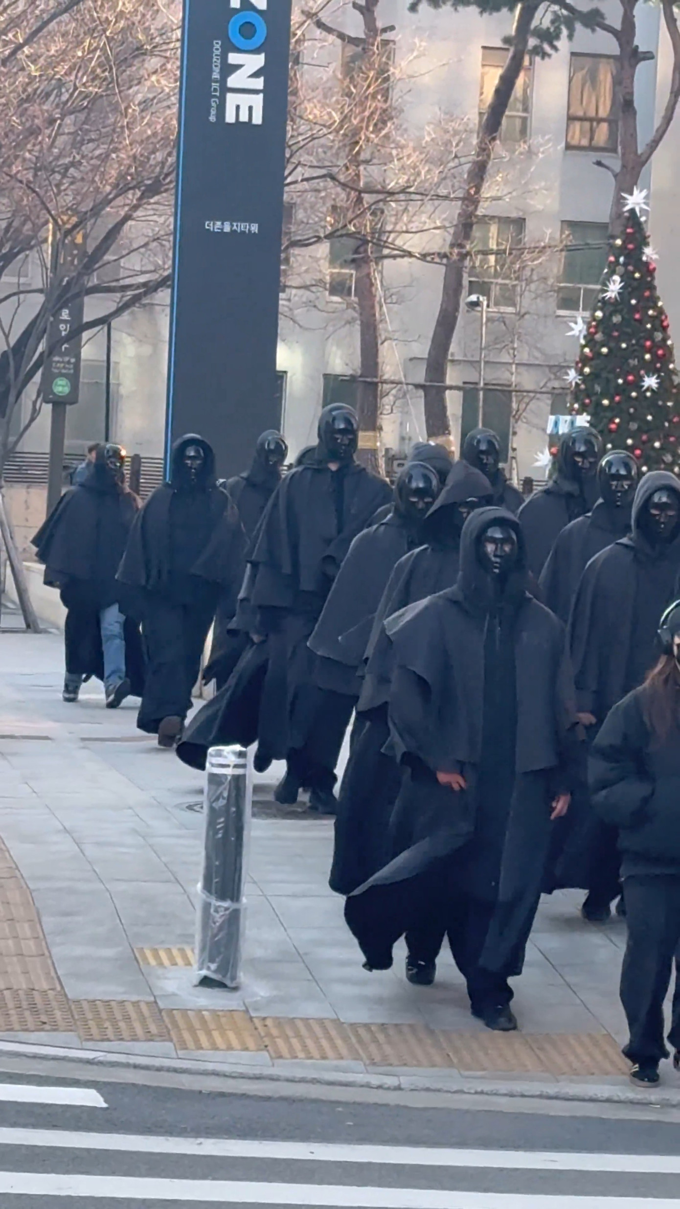 Đoàn người mặc áo choàng đen, che kín mặt khiến người dân Seoul nhầm tưởng là một "giáo phái" nào đó. (Ảnh: yonpil_)