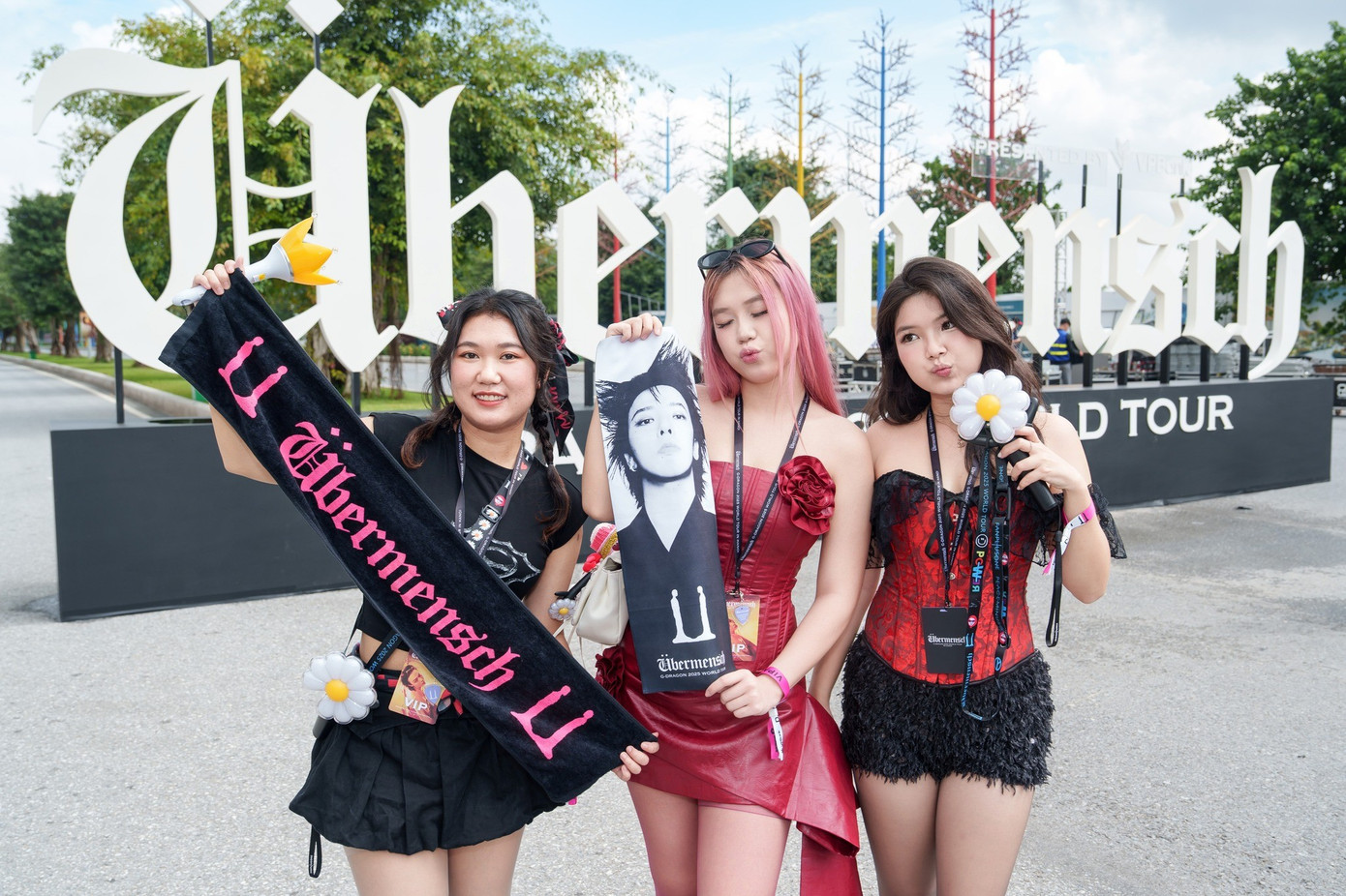 Dresscode lần này đã tạo bức tranh thị giác mạnh mẽ, đúng tinh thần "Übermensch" mà G-Dragon hướng tới. Sắc đỏ rực rỡ chiếm ưu thế, thể hiện tinh thần nhiệt huyết và sự không ngại khác biệt. Nhiều fan lựa chọn màu đỏ nổi bật cho trang phục chính như váy liền, áo khoác, hoặc sử dụng màu này trên các phụ kiện như tất cao cổ và găng tay.