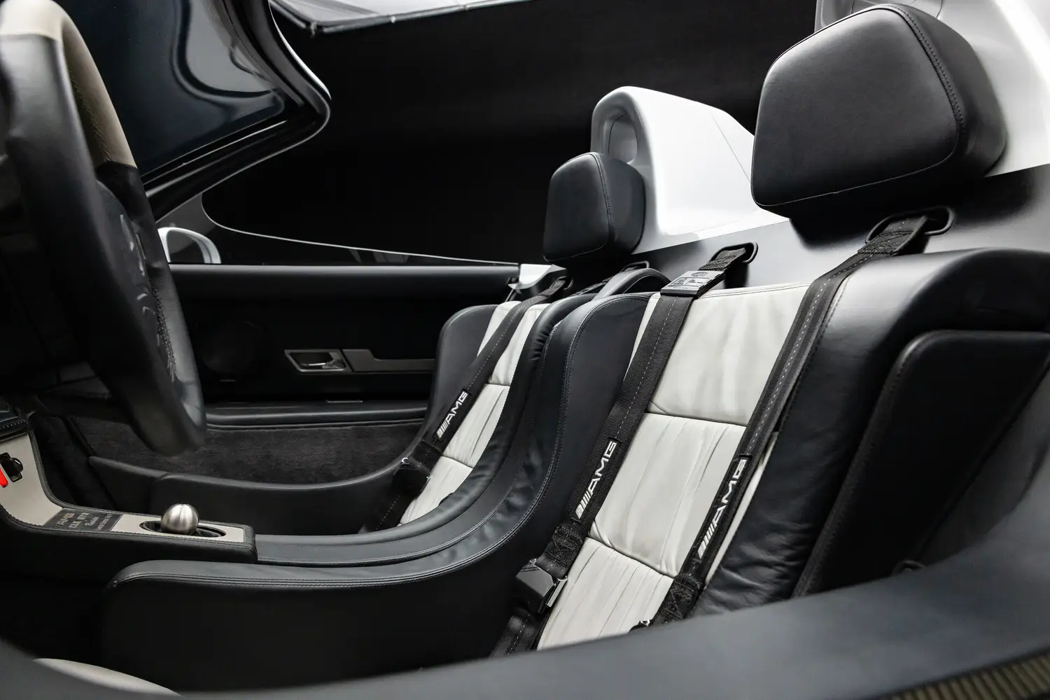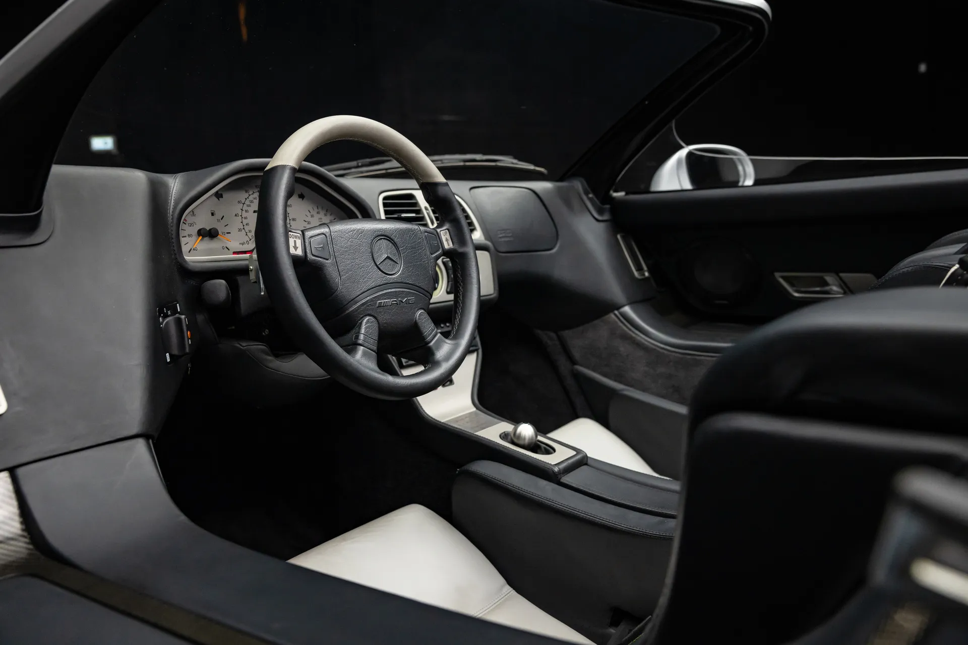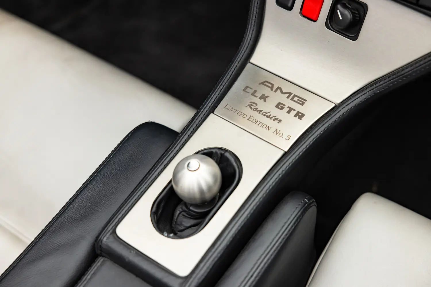 Tại bệ tay trung tâm, thương hiệu đến từ Đức đặt bảng tên "AMG CLK GTR Roadster Limited Edition No. 5", cho biết đây là chiếc xe thứ 5 trong tổng số 6 chiếc từng được chế tạo.