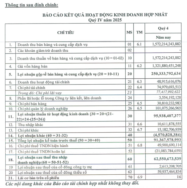 Đính chính báo cáo tài chính hợp nhất