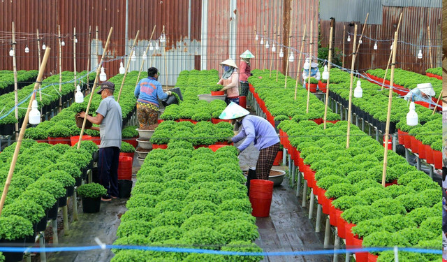Nông dân của Làng hoa Sa Đéc đang chăm sóc hoa kiểng chuẩn bị cho lễ hội