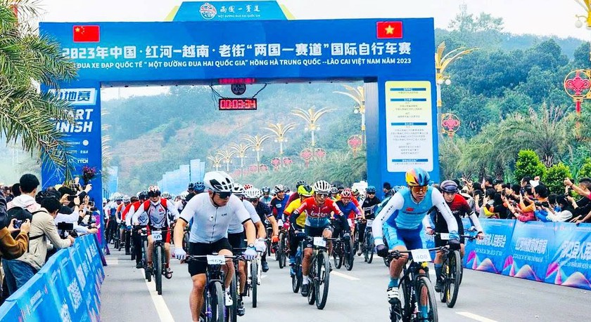 Giải đua xe đạp quốc tế "Một đường đua, hai quốc gia" Lào Cai (Việt Nam) và Hồng Hà (Trung Quốc). Ảnh: Quốc Hồng
