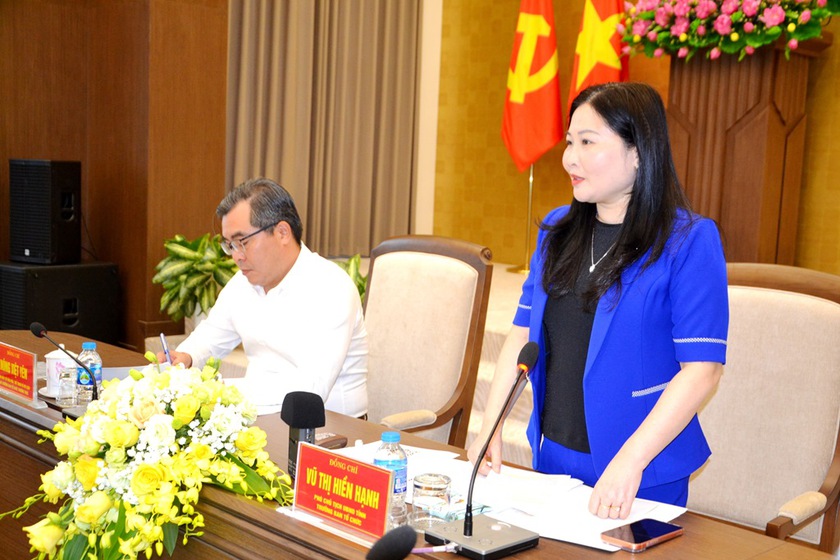 Phó Chủ tịch Ủy ban nhân dân tỉnh Lào Cai Vũ Thị Hiền Hạnh chủ trì buổi họp báo. Ảnh: Quốc Hồng