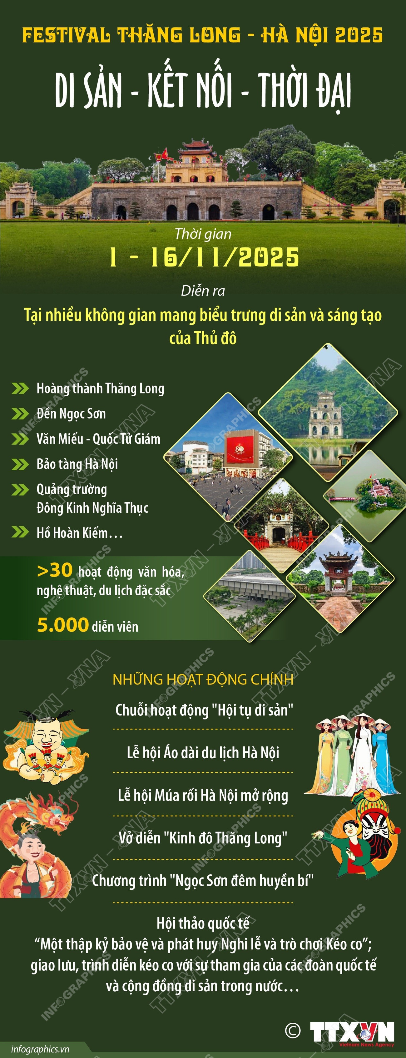 Lần đầu tiên được tổ chức, Festival Thăng Long-Hà Nội 2025 với chủ đề “Di sản - Kết nối - Thời đại” diễn ra trong 16 ngày (từ 1 đến 16/11/2025) tại nhiều không gian văn hóa của Hà Nội.