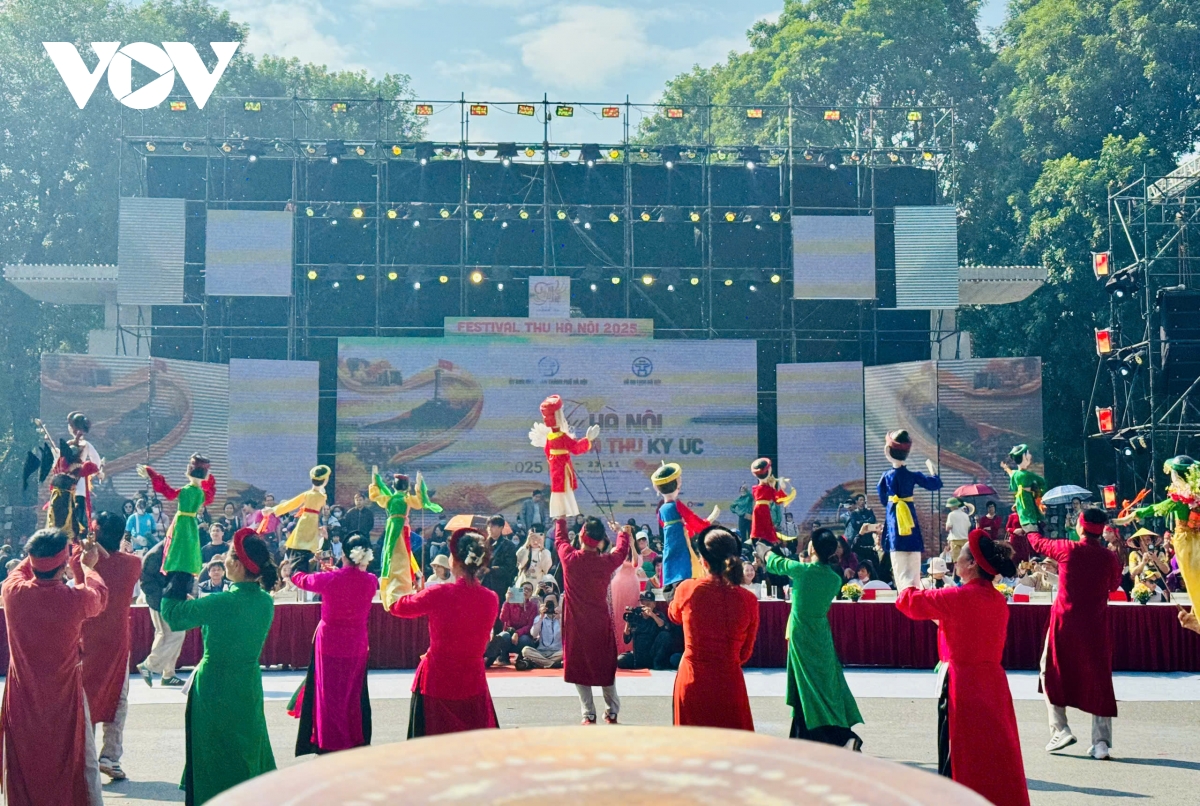 Đáng chú ý trong Festival Thu Hà Nội 2025, hoạt động đồng diễn nghệ thuật “Hà Nội - Miền ký ức” vào sáng ngày 23/11 tại phố đi bộ Trần Nhân Tông đã để lại ấn tượng sâu sắc với người xem. Các tiết mục trình diễn có sự tham gia của nhiều câu lạc bộ, đội văn nghệ địa phương như: Múa lân sư rồng Thanh Oai, múa rối cạn Tế Tiêu, múa hát chèo tàu Đan Phượng, nhóm múa sinh viên Trường Đại học Văn hóa Hà Nội, hát trống quân Thường Tín, cồng chiêng Phú Cát... tạo nên bầu không khí phấn khởi và lan tỏa tại không gian phố đi bộ.