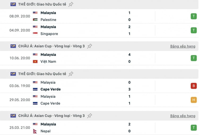 Malaysia gần như bị xử thua tổng cộng 6 trận vì dùng cầu thủ nhập tịch trái phép, bao gồm 4 trận giao hữu (Cape Verde 2 trận, Singapore, Palestine) và 2 trận tại Vòng loại Asian Cup 2027 (trước Việt Nam và Nepal). Theo thông tin được nêu, các trận này khả năng cao sẽ bị xử thua 0-3.
