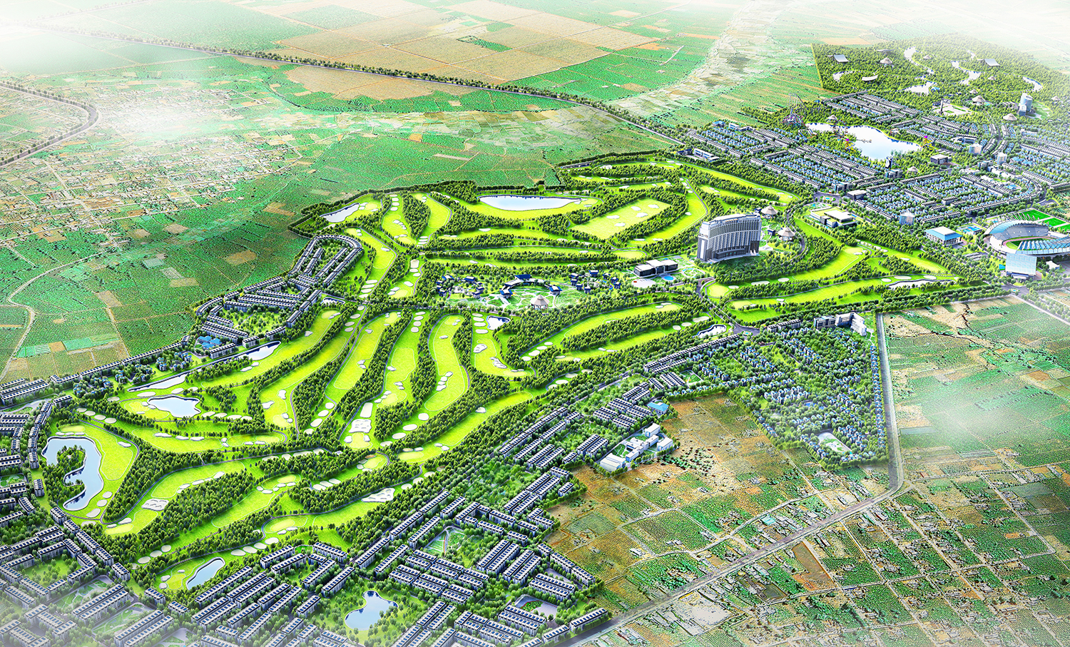 Dự án được phát triển đồng bộ với đa dạng loại hình sản phẩm như khu đô thị, biệt thự, sân golf, công viên sinh thái, khu liên hiệp thể thao, trung tâm thương mại, trường học liên cấp…. tạo thành một hệ sinh thái khép kín.