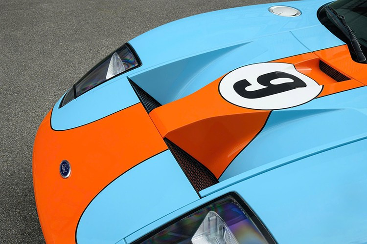 Khoác lên mình bộ cánh xanh Gulf Blue và cam đặc trưng , phiên bản này gợi nhớ ngay đến chiếc GT40 Mk I đã giành chiến thắng tại Le Mans năm 1968 và 1969. Quyết định hồi sinh tông màu này của Ford không chỉ đơn thuần là hoài niệm. Nó còn là sự tôn vinh cho sự đổi mới, sức bền và tinh thần đua xe.