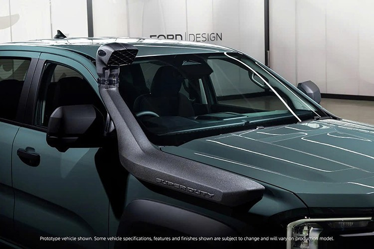 Ford Ranger Super Duty XLT 2026 sở hữu hệ thống khung gầm và treo được tinh chỉnh với khoảng sáng gầm tăng thêm, lốp địa hình cỡ lớn và ống thở tiêu chuẩn, cho phép xe lội nước sâu tới 850 mm.