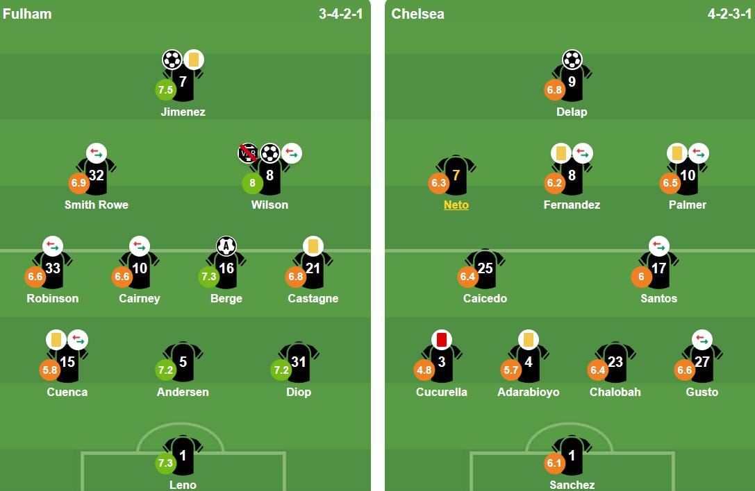 Thảm họa thực sự ập đến ở phút 22. Từ một pha phản công chớp nhoáng của Fulham, Marc Cucurella buộc phải phạm lỗi với Harry Wilson để ngăn chặn một cơ hội ghi bàn rõ rệt. Trọng tài Peter Banks không ngần ngại rút thẻ đỏ trực tiếp, buộc Chelsea phải chơi thiếu người trong hơn 70 phút còn lại của trận đấu.