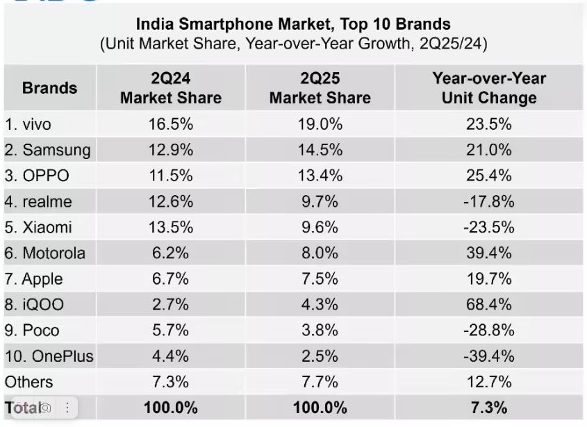 Điều đáng nói là mặc dù iPhone 16 là mẫu máy bán chạy nhất tại Ấn Độ nửa đầu 2025, thì tổng thể Apple vẫn khó mở rộng quy mô nhanh như kỳ vọng vì giá sản phẩm cao, trong khi người tiêu dùng Ấn Độ vẫn nhạy cảm với giá. Các thương hiệu như vivo, OPPO, realme và Xiaomi chiếm ưu thế ở phân khúc trung cấp, vốn chiếm gần 60% tổng lượng máy bán ra cả nước.