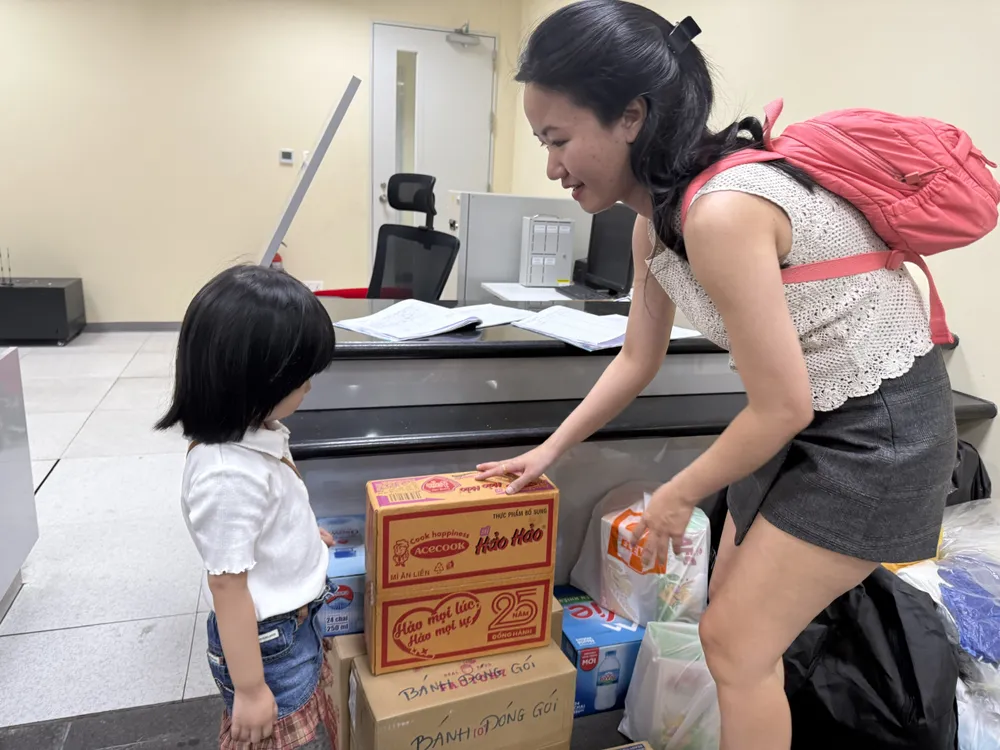 Tại chung cư nơi chị sinh sống, cư dân cũng phát động quyên góp, trong khi một nhóm khác chuẩn bị xe đi Phú Yên, trao sách vở cho học sinh vùng lũ.