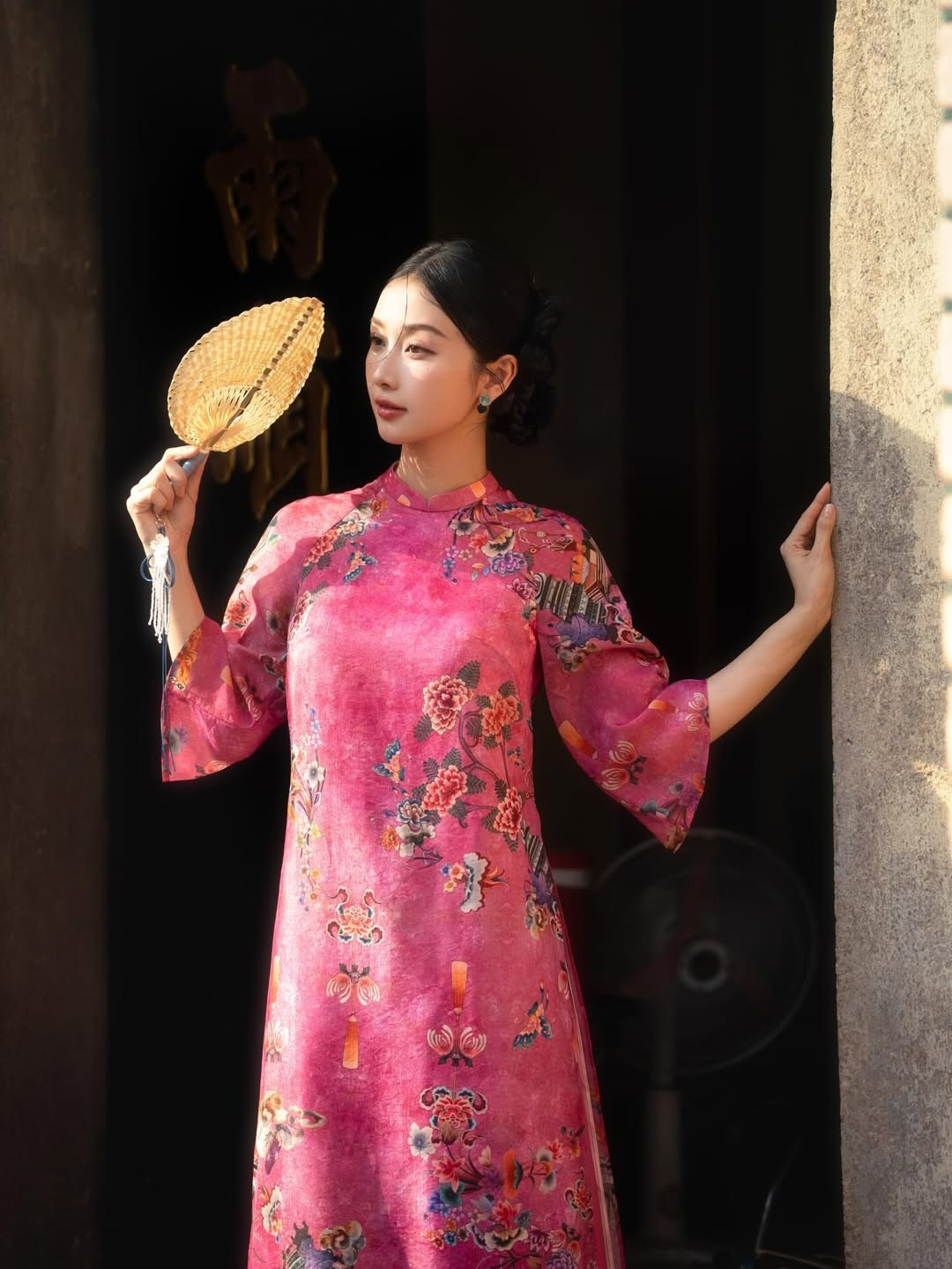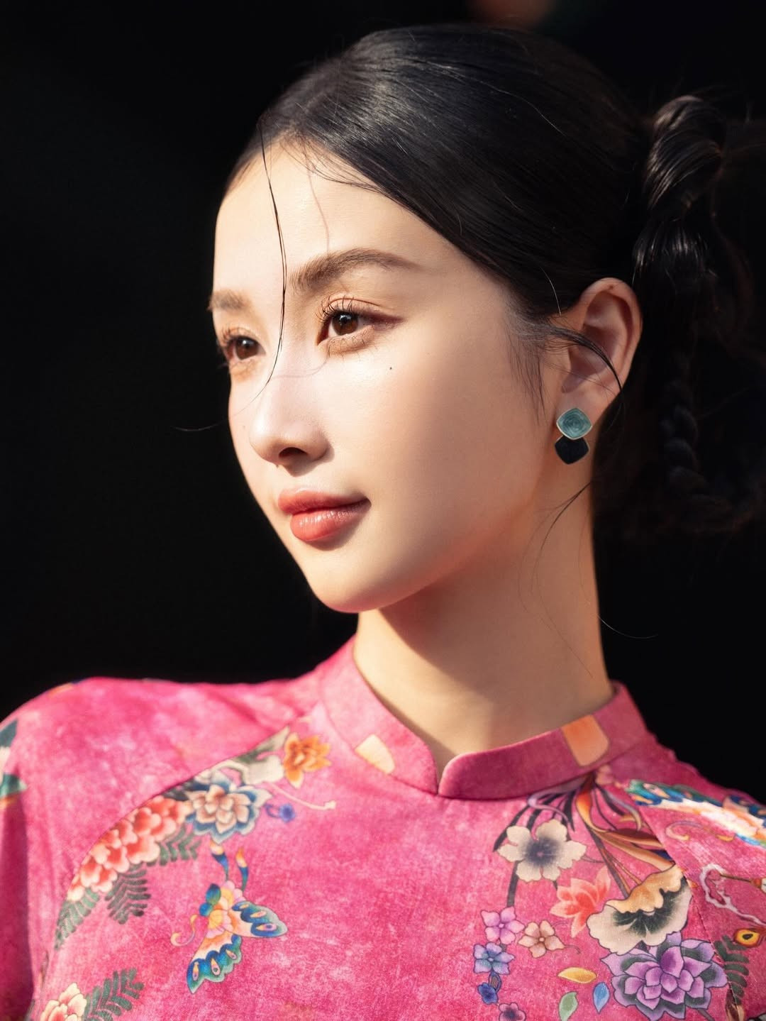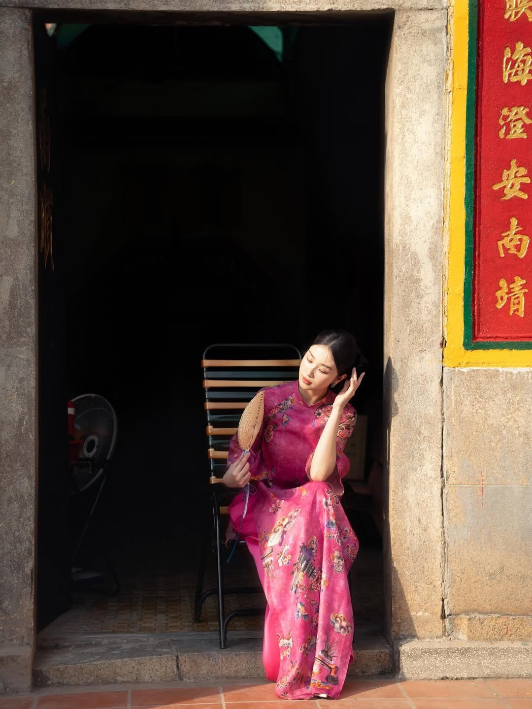 Khoác lên mình thiết kế áo dài tông hồng rực rỡ nhưng vẫn dịu mắt, nữ diễn viên Jun Vũ (Vũ Phương Anh) ghi điểm tuyệt đối nhờ vẻ đẹp mong manh, thanh thuần cùng thần thái đậm chất “nàng thơ”.
