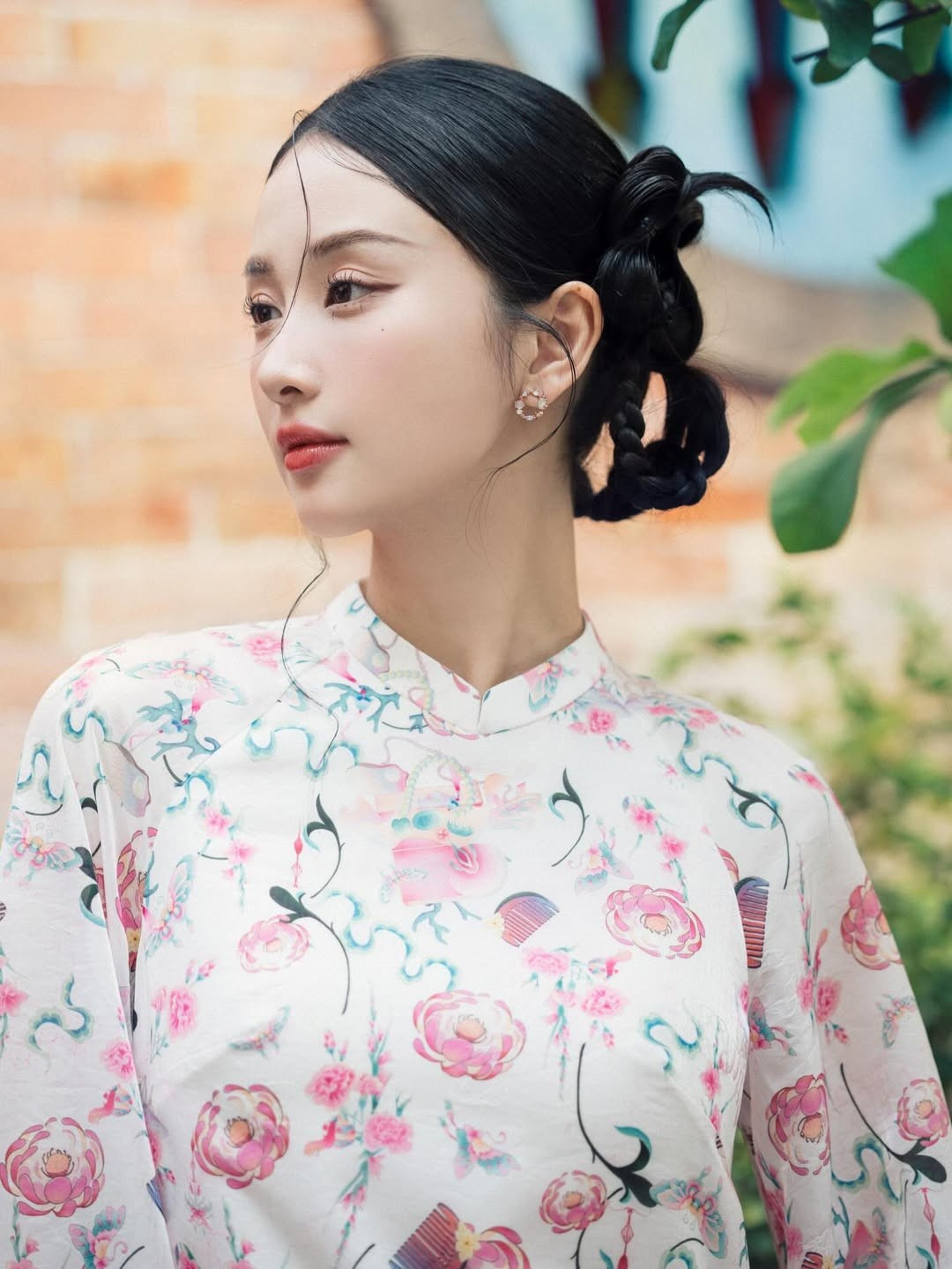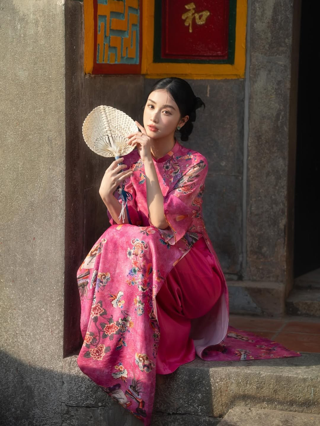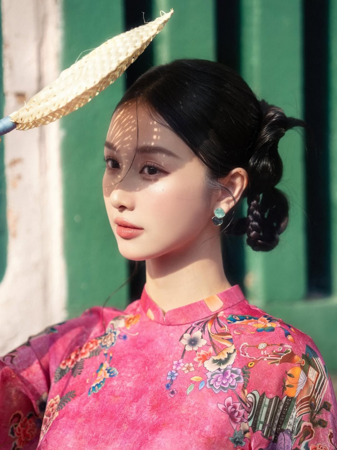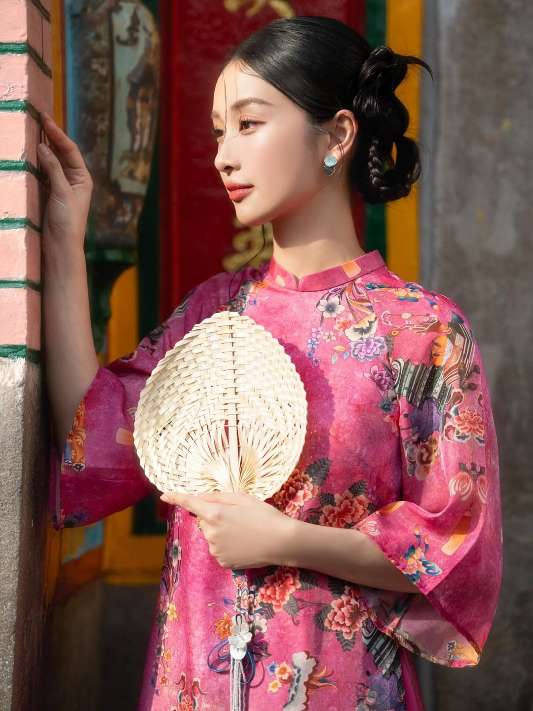 Khoác lên mình thiết kế áo dài tông hồng rực rỡ nhưng vẫn dịu mắt, nữ diễn viên Jun Vũ (Vũ Phương Anh) ghi điểm tuyệt đối nhờ vẻ đẹp mong manh, thanh thuần cùng thần thái đậm chất “nàng thơ”.