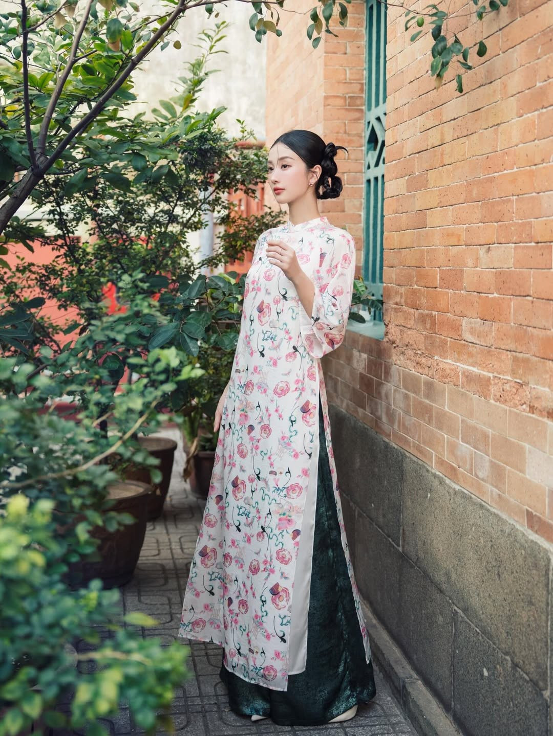 Không chỉ gây ấn tượng bởi gương mặt xinh đẹp, vóc dáng của Jun Vũ khi diện áo dài cũng là điểm nhấn đặc biệt. Thân hình mảnh mai, cao ráo cùng bờ vai thon gọn và vòng eo nhỏ nhắn giúp cô tôn trọn phom dáng mềm mại của tà áo dài.
