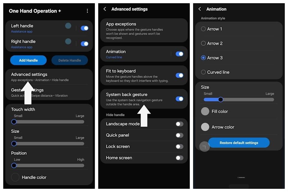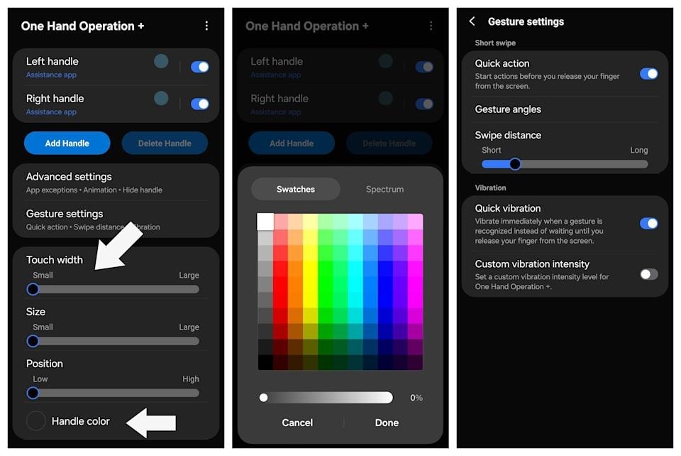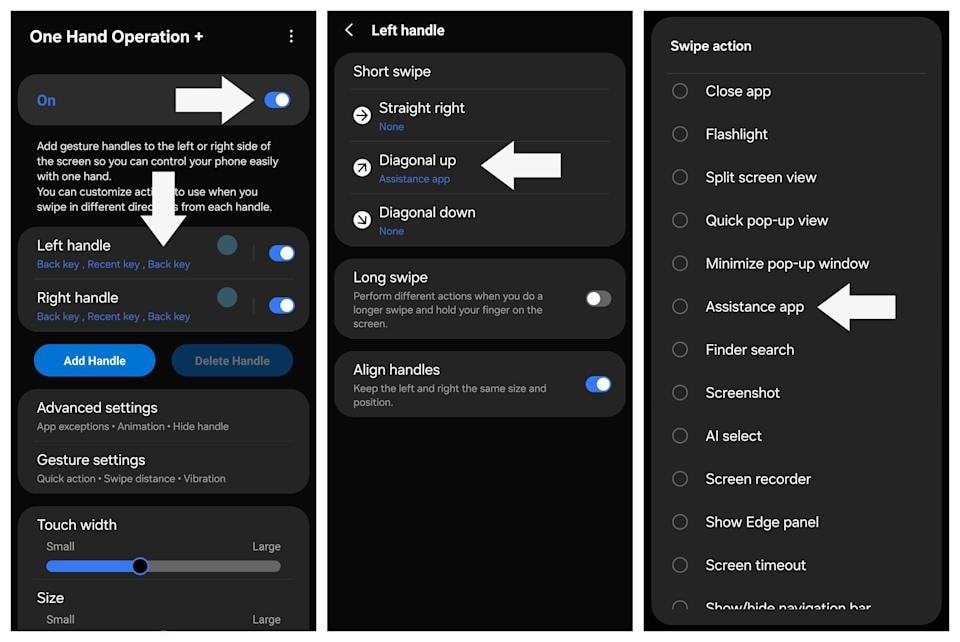 Cụ thể, thông qua module One Hand Operation +, người dùng có thể thiết lập các “vùng vuốt” ở cạnh màn hình và gán hành động mở trợ lý AI. Khi cấu hình đúng, thao tác vuốt chéo từ cạnh dưới gần như tái tạo lại trải nghiệm “Swipe for Assistant” đã bị loại bỏ.