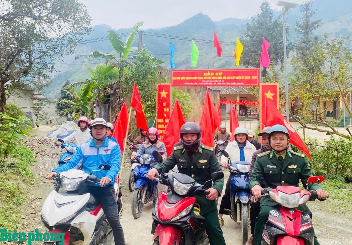 Trong sắc đỏ rực rỡ của cờ Tổ quốc, băng rôn, khẩu hiệu, 989 người gồm cán bộ, chiến sĩ Đồn Biên phòng Tùng Vài, Bộ đội Biên phòng tỉnh Tuyên Quang; cán bộ xã, đoàn viên, giáo viên và học sinh các đơn vị, trường học trên địa bàn xã đã tham gia diễu hành, cổ động qua các tuyến đường chính của trung tâm xã và các khu dân cư. Những khẩu hiệu tuyên truyền như “Nhiệt liệt chào mừng Ngày bầu cử đại biểu Quốc hội khóa XVI và đại biểu Hội đồng nhân dân các cấp nhiệm kỳ 2026 - 2031”, “Mỗi cử tri hãy sáng suốt lựa chọn những đại biểu tiêu biểu, xứng đáng”... được treo trang trọng; các em học sinh tay cầm cờ Tổ quốc hăng hái bước đều theo đoàn diễu hành tạo nên không khí rộn ràng nơi vùng biên.