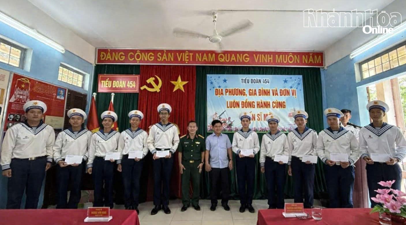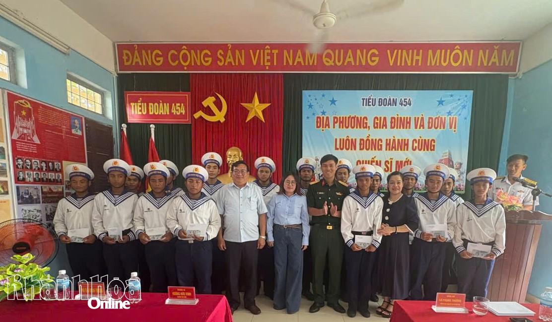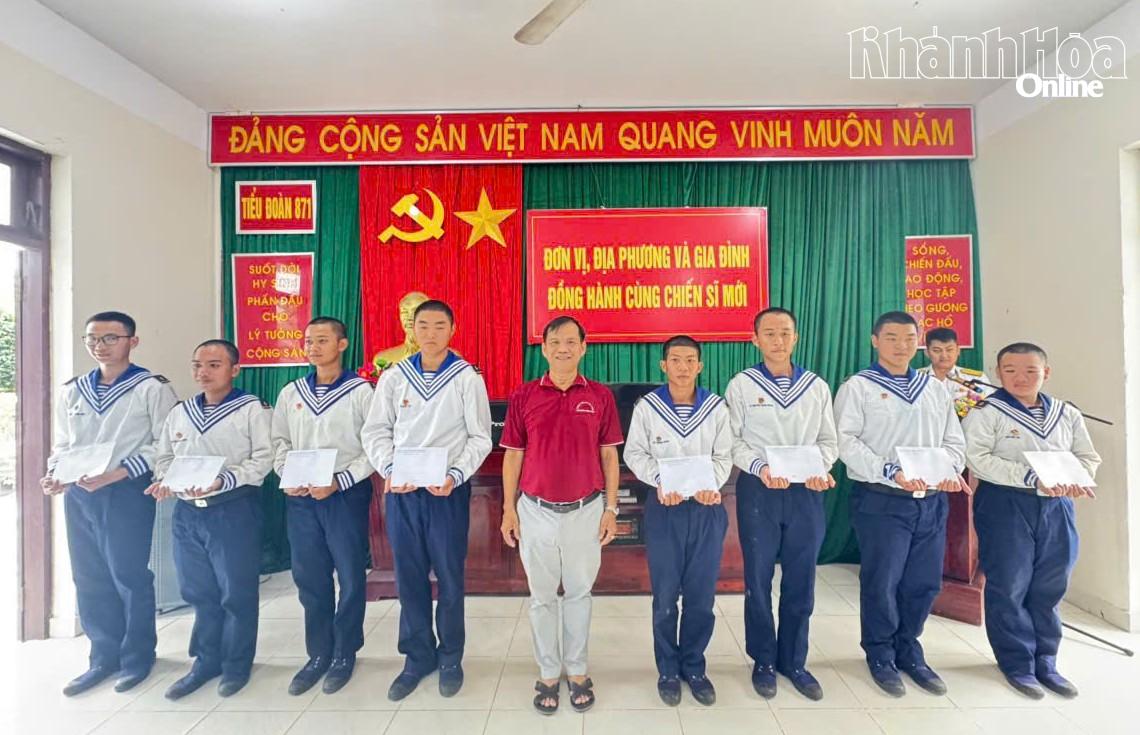Lãnh đạo xã Thuận Bắc, tỉnh Khánh Hòa tặng quà động viên chiến sĩ mới.
