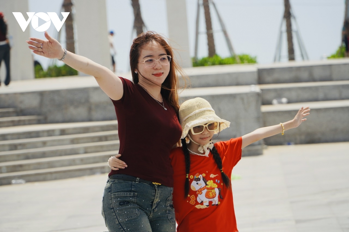 Du khách thích thú check-in tại tháp Tam Thắng