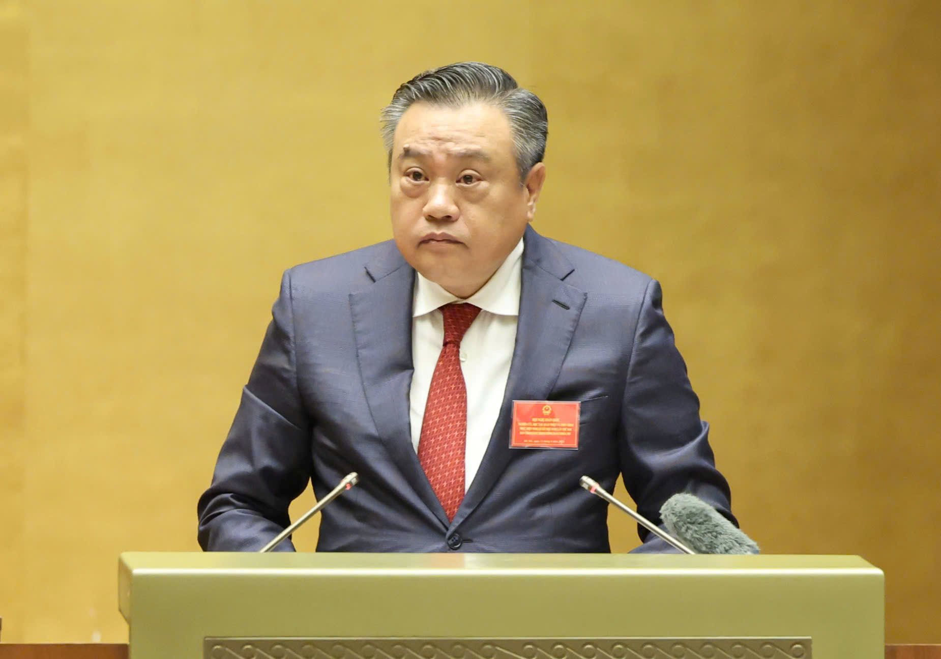 Đồng chí Lê Minh Trí - Ủy viên Bộ Chính trị, Bí thư Trung ương Đảng, Trưởng ban Nội chính Trung ương - trình bày Nghị quyết về tiếp tục tăng cường sự lãnh đạo của Đảng đối với công tác phòng, chống tham nhũng, lãng phí, tiêu cực trong giai đoạn mới. Ảnh: VPQH