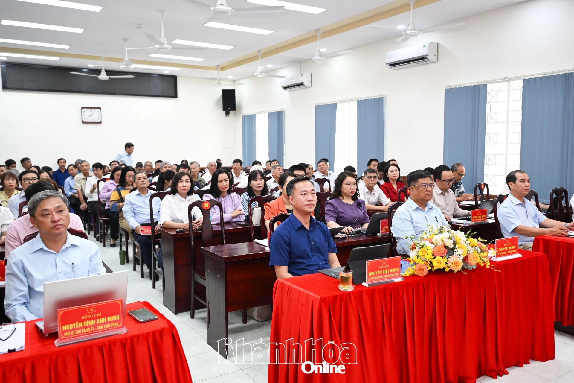 Dự hội nghị tại điểm cầu Tỉnh ủy Khánh Hòa có đồng chí Trần Phong - Ủy viên Trung ương Đảng, Bí thư Tỉnh ủy cùng các đồng chí nguyên Bí thư Tỉnh ủy, nguyên Phó Bí thư Tỉnh ủy, nguyên Ủy viên Ban Thường vụ Tỉnh ủy; lãnh đạo các sở, ngành, địa phương. Đồng chí Hồ Xuân Trường - Ủy viên dự khuyết Trung ương Đảng, Phó Bí thư Thường trực Tỉnh ủy dự tại điểm cầu Đảng ủy phường Ninh Hòa; đồng chí Lâm Đông - Phó Bí thư Tỉnh ủy, Chủ tịch HĐND tỉnh dự tại điểm cầu Đảng ủy phường Đông Hải; đồng chí Nguyễn Việt Hùng - Phó Bí thư Tỉnh ủy, Chủ tịch UBND tỉnh dự tại điểm cầu Đảng ủy phường Tây Nha Trang; đồng chí Nguyễn Khắc Hà - Phó Bí thư Tỉnh ủy, Chủ tịch Ủy ban MTTQ Việt Nam tỉnh dự tại điểm cầu Đảng ủy xã Cam Lâm. Các đồng chí Ủy viên Ban Thường vụ Tỉnh ủy, Ủy viên Ban Chấp hành Đảng bộ tỉnh dự hội nghị tại điểm cầu đảng ủy các xã, phường trên địa bàn tỉnh.