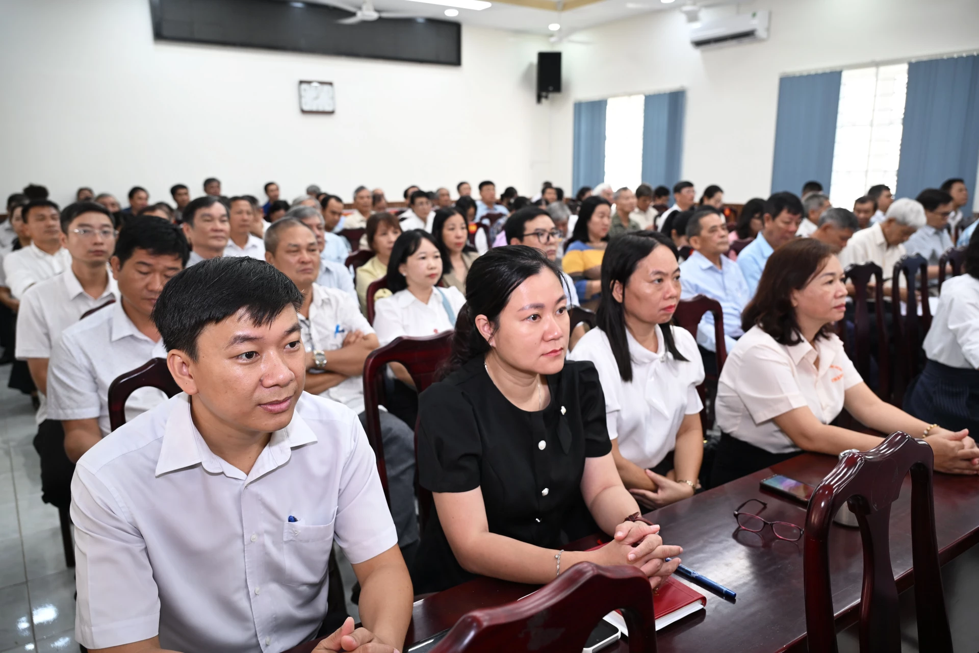 Cán bộ, đảng viên chăm chú theo dõi, học tập các nội dung tại hội nghị. Ảnh: VĂN GIANG