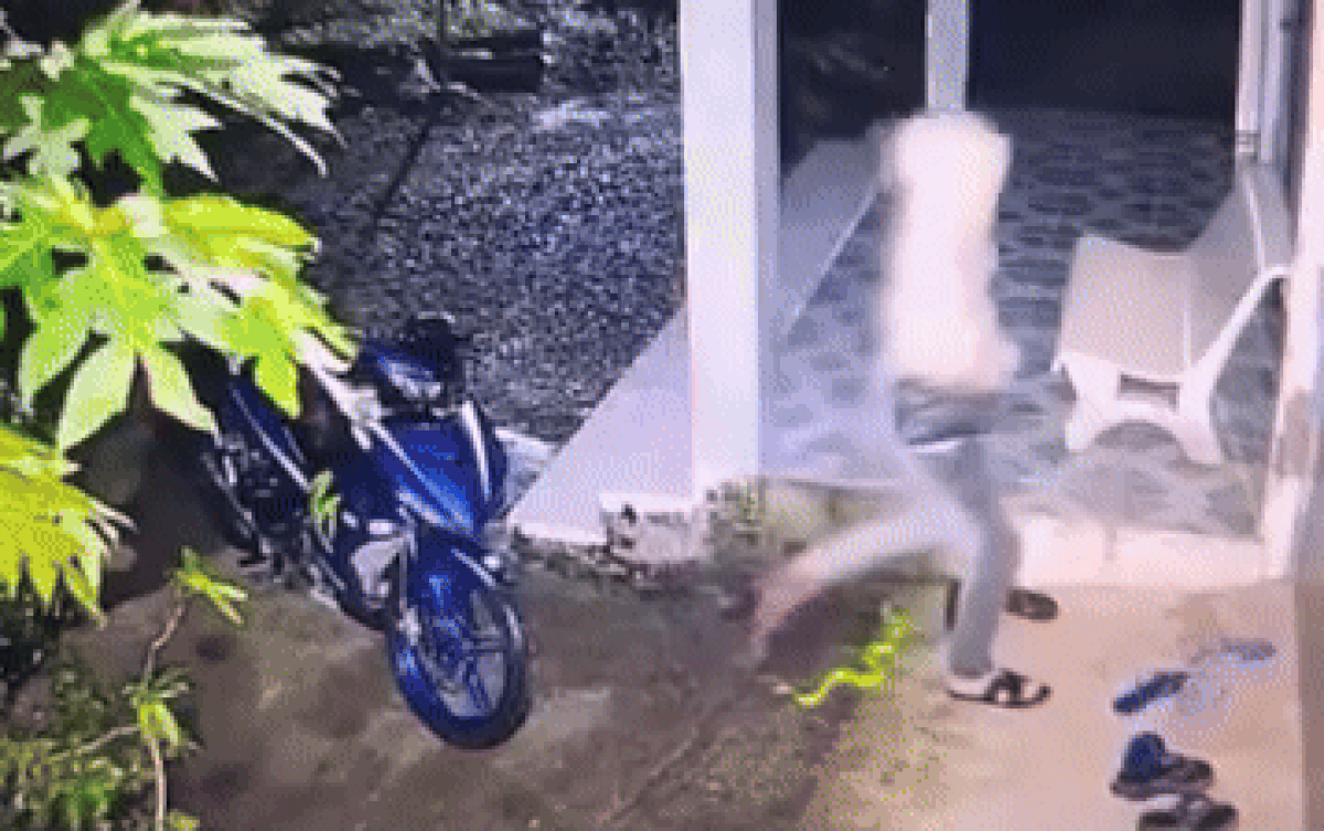 Theo đoạn clip ghi lại, nam thanh niên này đi xe máy về đến sân nhà thì thấy nhà đã khóa cửa. Ngay sau đó, anh đứng trước nhà để gọi điện thoại cho người thân mở cửa.