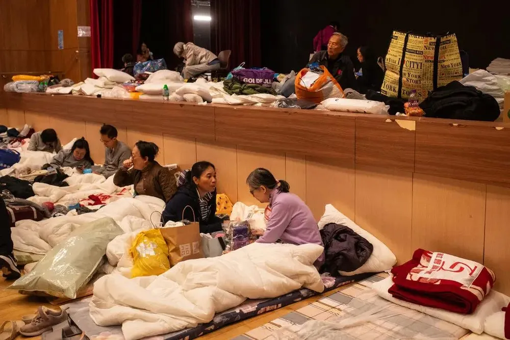 Nạn nhân trong vụ cháy chung cư Wang Fuk Court tại một nơi trú ẩn tạm thời vào tháng 11. Ảnh: Billy H.C. Kwok/THE NEW YORK TIMES