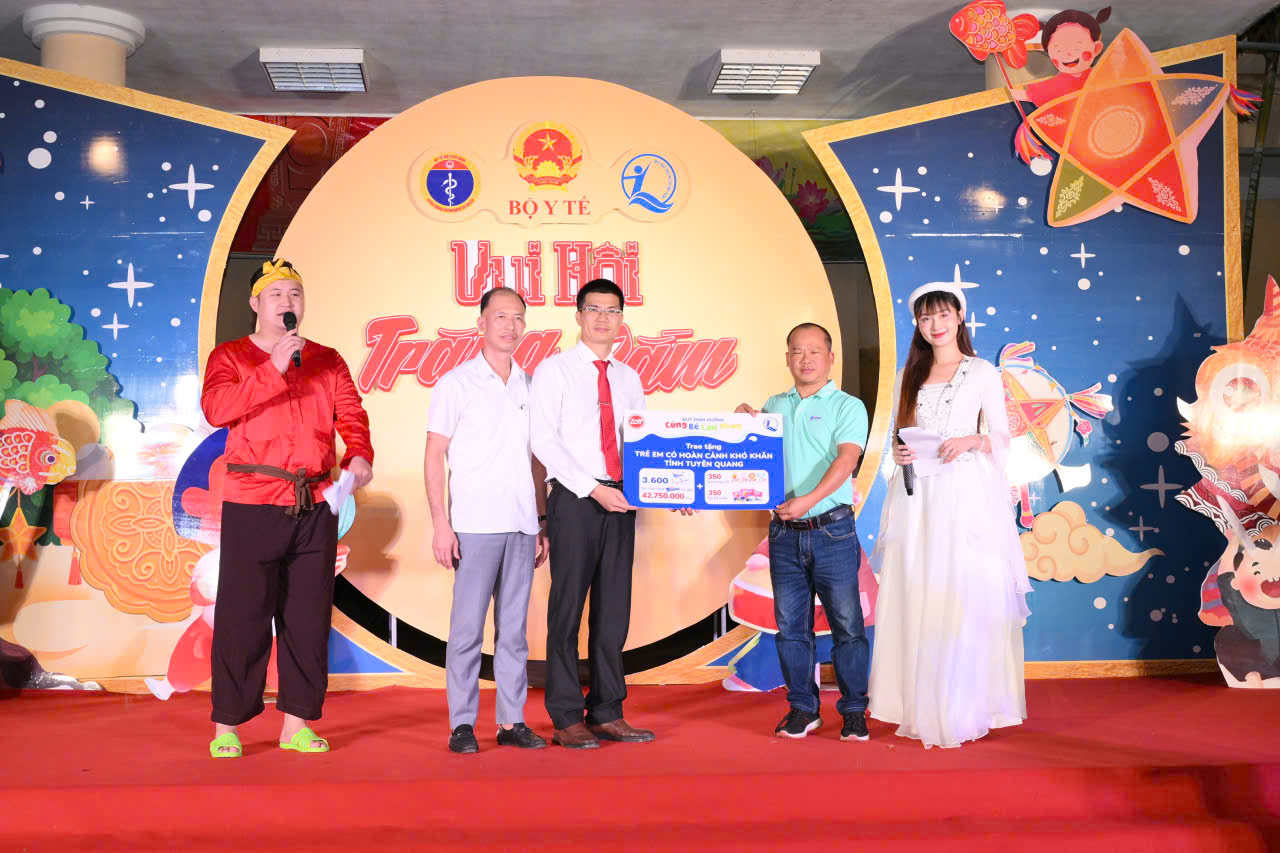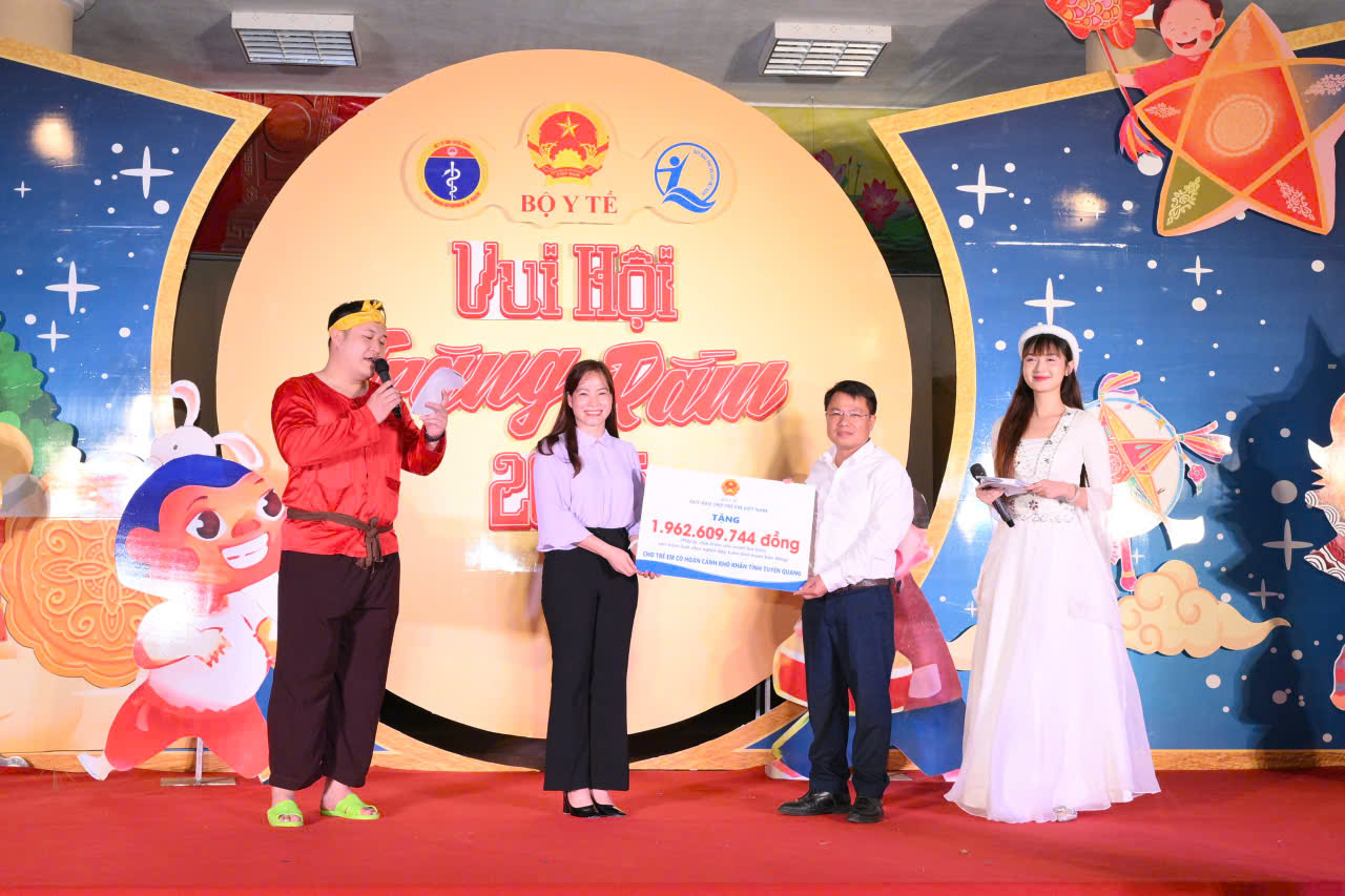 Nhân dịp Tết Trung thu 2025, tối 2/10, tại xã Trung Sơn, tỉnh Tuyên Quang, Quỹ Bảo trợ trẻ em Việt Nam (Bộ Y tế ) phối hợp với Trung tâm Công tác xã hội và Quỹ Bảo trợ trẻ em tỉnh Tuyên Quang tổ chức chương trình "Vui Trung thu" dành cho trẻ em có hoàn cảnh đặc biệt, khó khăn trên địa bàn tỉnh.