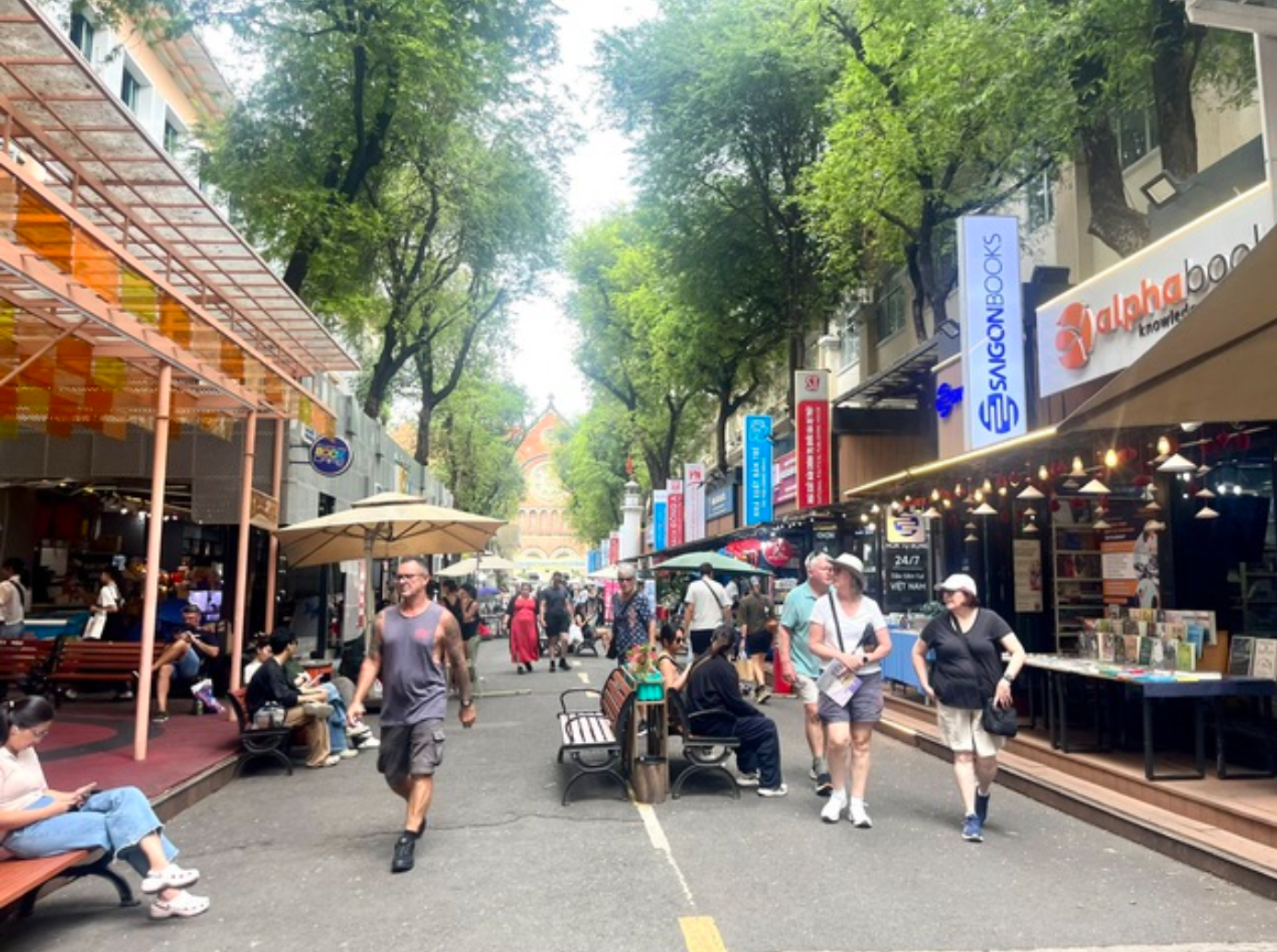 Khách du lịch tham quan ở đường sách Nguyễn Văn Bình, trung tâm TP.HCM - Ảnh: VGP/LA