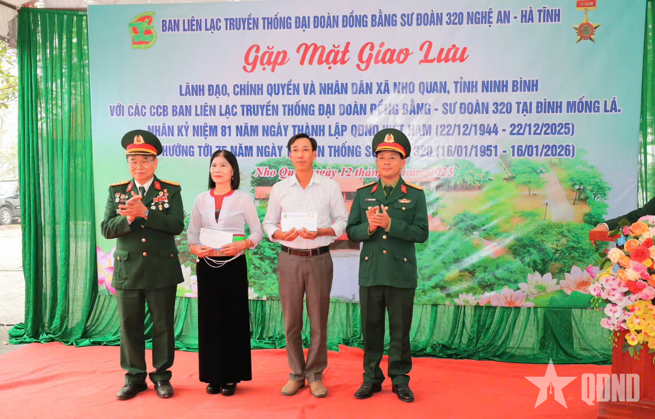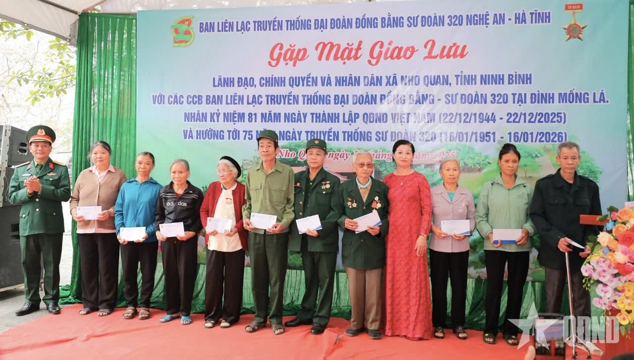 Tại chương trình, nhằm tri ân Đảng bộ, chính quyền và nhân dân xã Nho Quan đã che chở, giúp đỡ đơn vị từ những ngày đầu mới thành lập và luôn đồng hành, động viên cán bộ, chiến sĩ Sư đoàn 320 hoàn thành tốt mọi nhiệm vụ, các cựu chiến binh đã dành 20 suất quà trị giá hàng chục triệu đồng tặng gia đình chính sách và các cháu học sinh có hoàn cảnh khó khăn, chăm ngoan, học giỏi của địa phương.