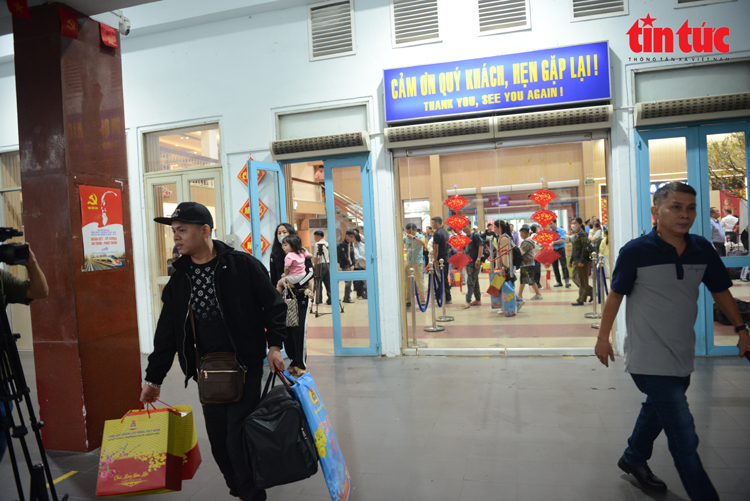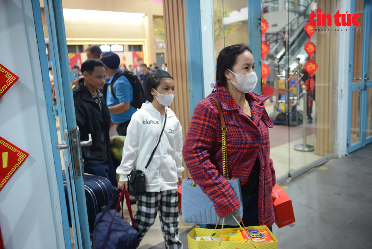 Người dân qua cửa kiểm soát vé để ra tàu về quê ăn Tết.