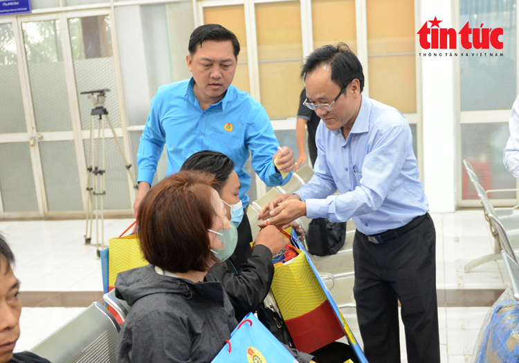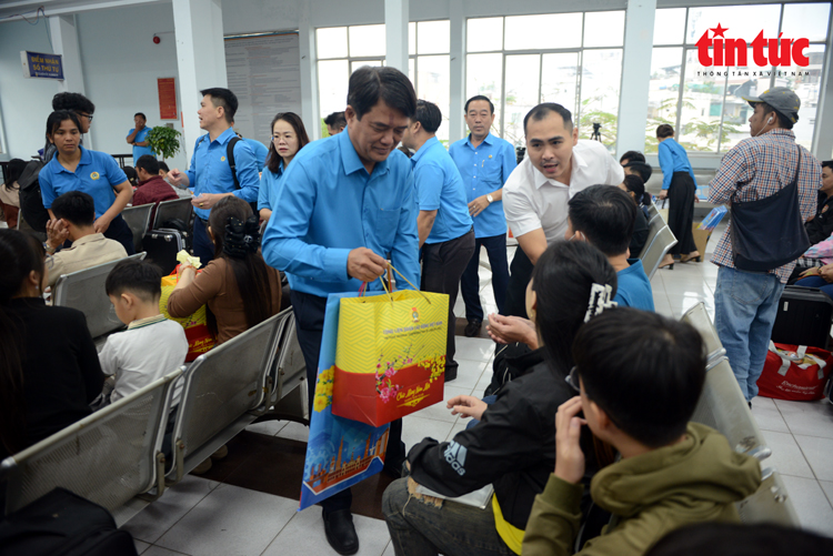Lãnh đạo Công đoàn thăm hỏi, động viên người lao động trước khi lên tàu về quê ăn Tết.