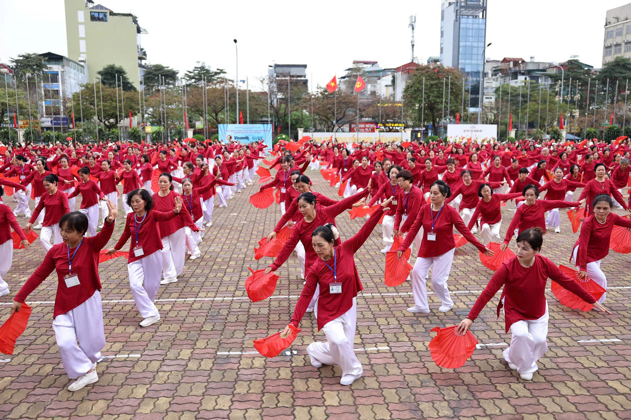 Sáng 21/3, tại Hà Nội đã diễn ra Ngày hội xác lập kỷ lục Múa quạt dưỡng sinh dành cho người trung cao tuổi, với sự tham gia của gần 3.000 người cao tuổi đến từ các phường, xã trên địa bàn Hà Nội.