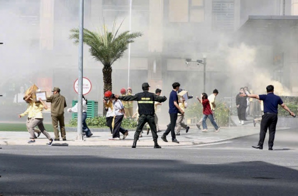 Hàng ngàn người được hướng dẫn thoát khỏi các tòa nhà khi đám cháy bùng phát.