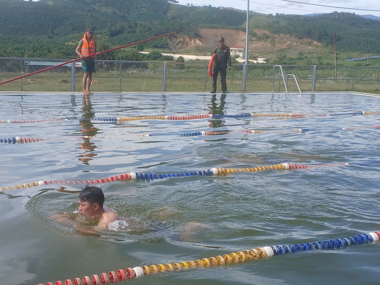 Đối với nội dung bơi tự do, để kiểm tra đạt được mục đích yêu cầu đề ra cũng như bảo đảm an toàn tuyệt đối về mọi mặt, Ban Tổ chức đã chủ động phối hợp hiệp đồng với Trung đoàn Bộ binh 994B triển khai công tác bảo đảm an toàn về lực lượng cứu hộ, áo phao, sào cứu hộ và lực lượng quân y.