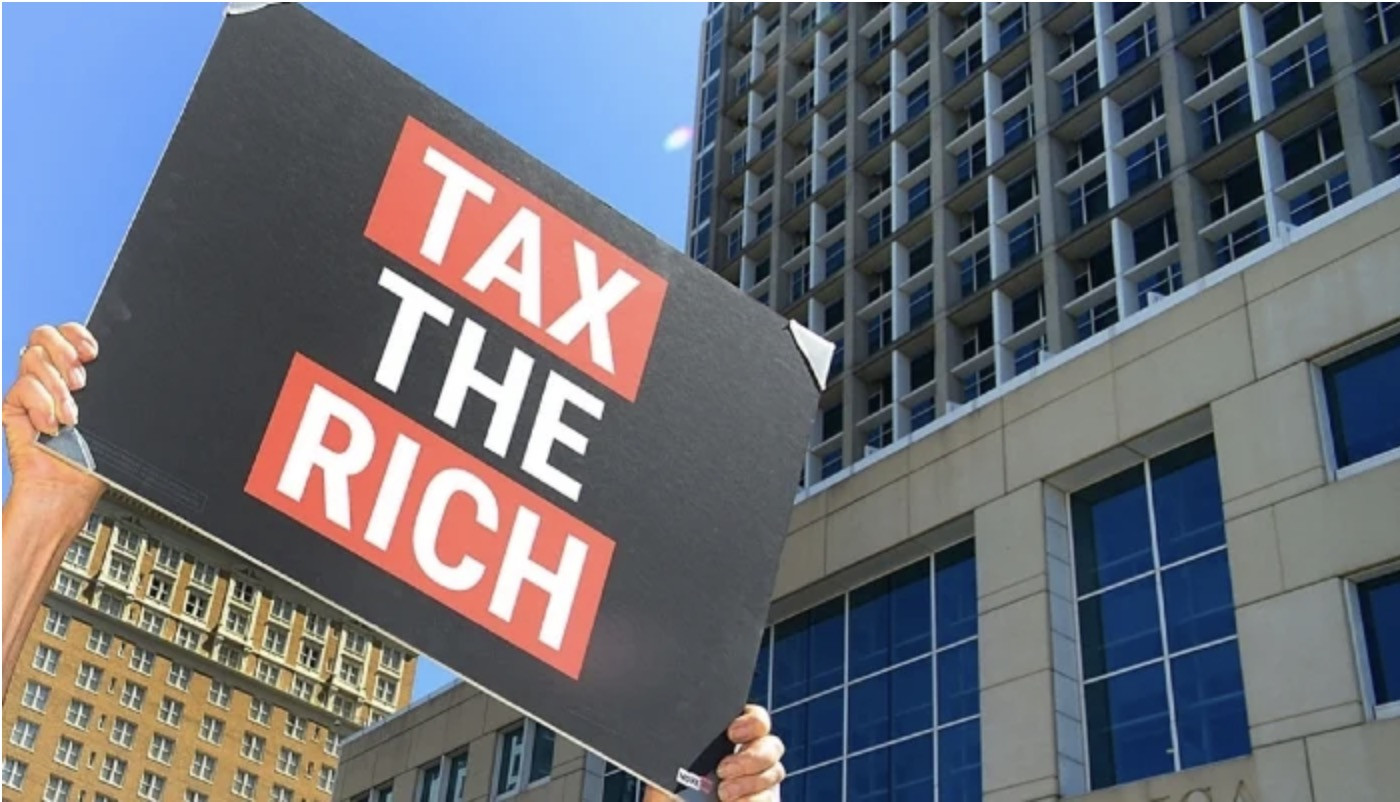Tấm biển kêu gọi đánh thuế người giàu. Ảnh: Daily Jang