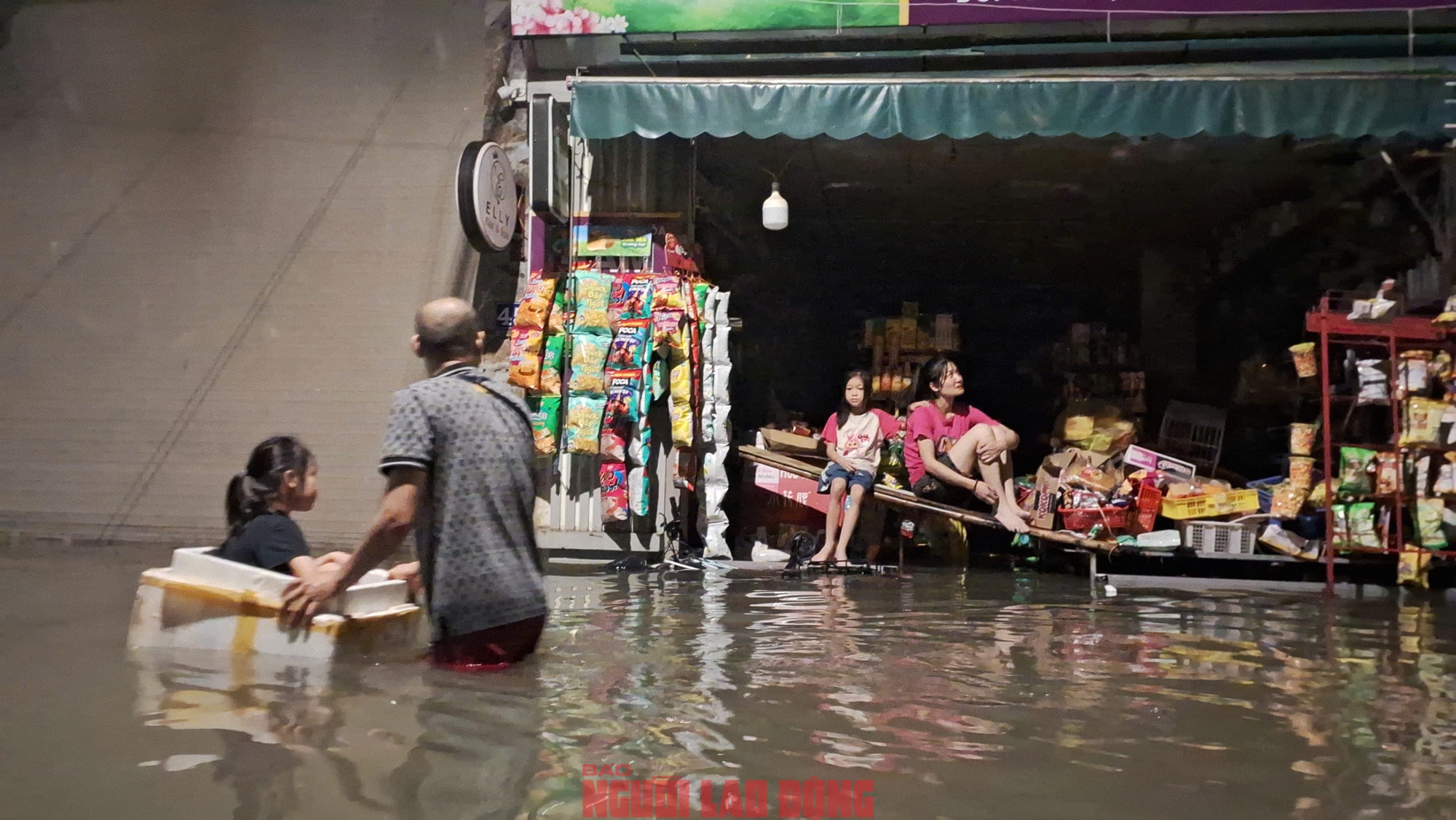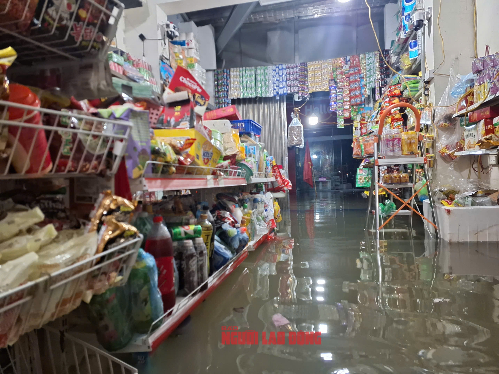 Tiệm tạp hóa của bà Dư ngập sâu hơn so với mực nước của đợt ngập năm 2008 tại Hà Nội khoảng 20cm. Ảnh: Văn Duẩn