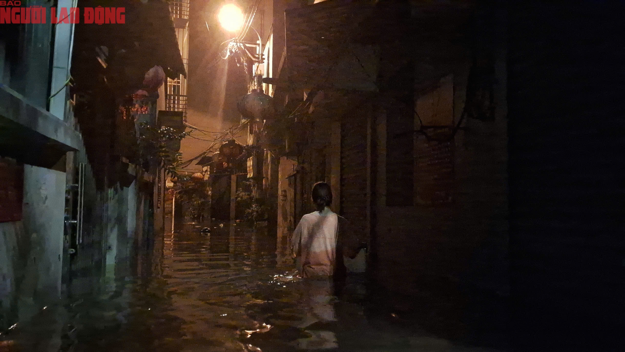 Chỉ sau vài tiếng, nước đã ngập tràn khu chợ. Nước dâng rất nhanh. Đến 12 giờ trưa 30-9, toàn bộ khu vực chợ Phú Đô và nhiều ngõ, ngách ở các tổ dân phố số 2, số 3 nước đã tràn vào nhà.