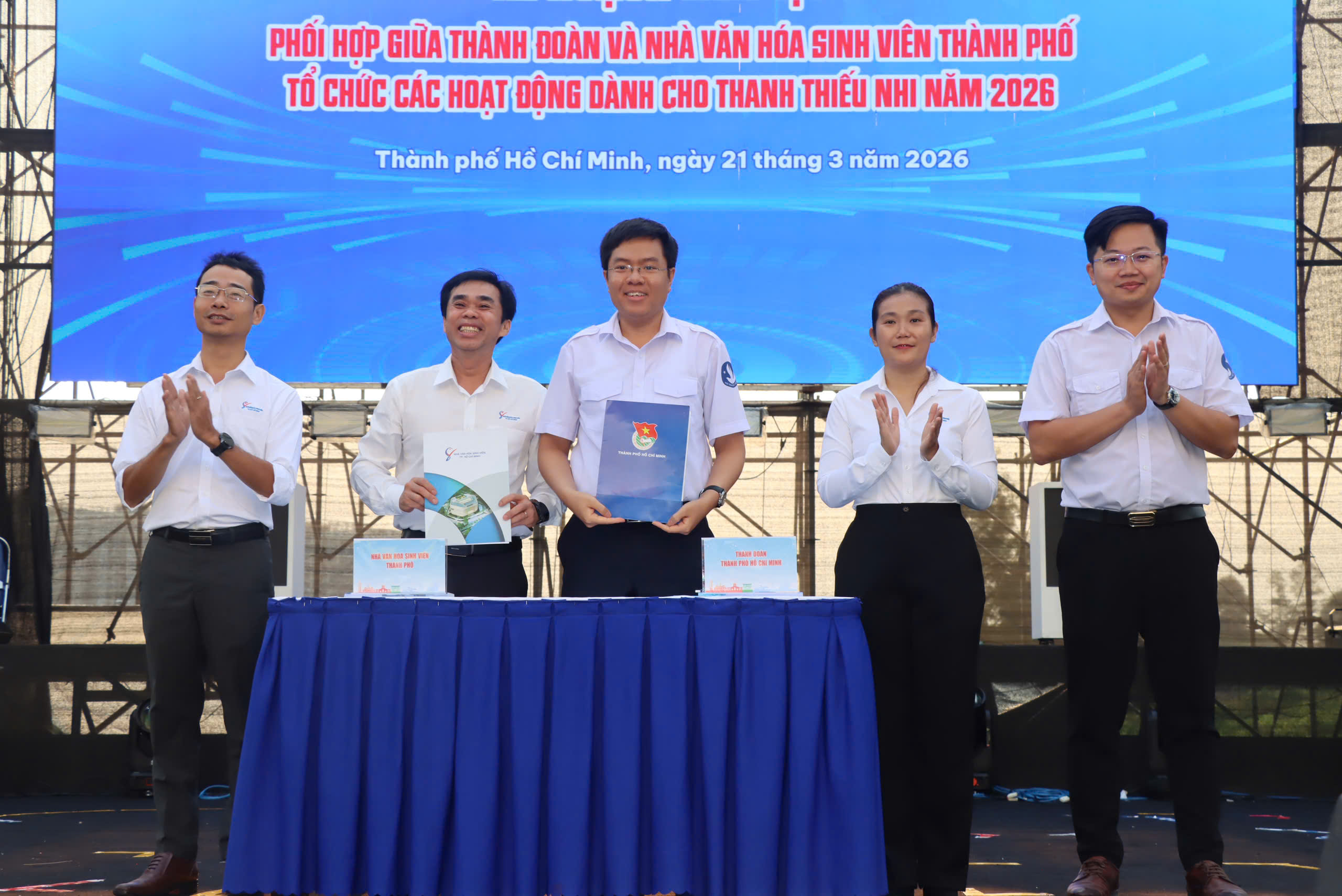 Dịp này, Thành đoàn TPHCM và Nhà Văn hóa Sinh viên TPHCM thực hiện ký kết phối hợp tổ chức các hoạt động dành cho thanh thiếu nhi năm 2026