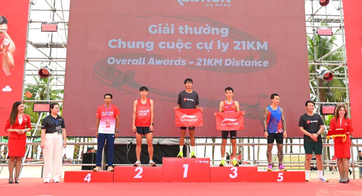 Ban tổ chức trao giải cho các vận động viên nam tại cự ly 21km.