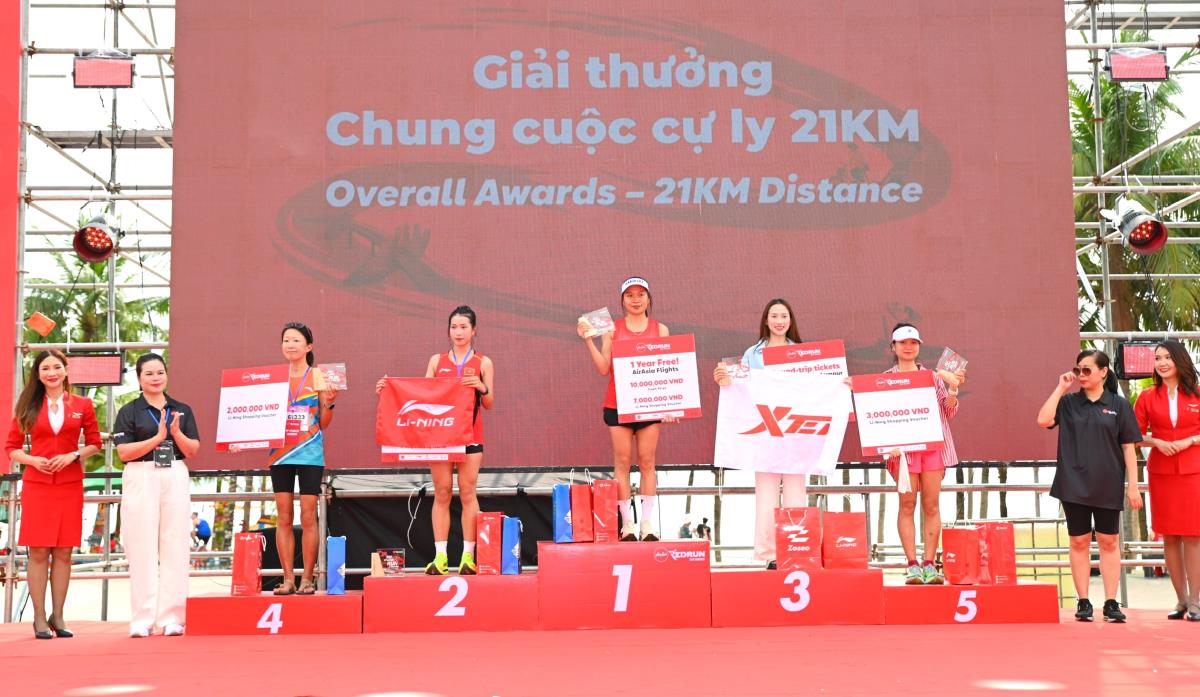 Ban tổ chức trao giải cho các vận động viên nữ tại cự ly 21km.