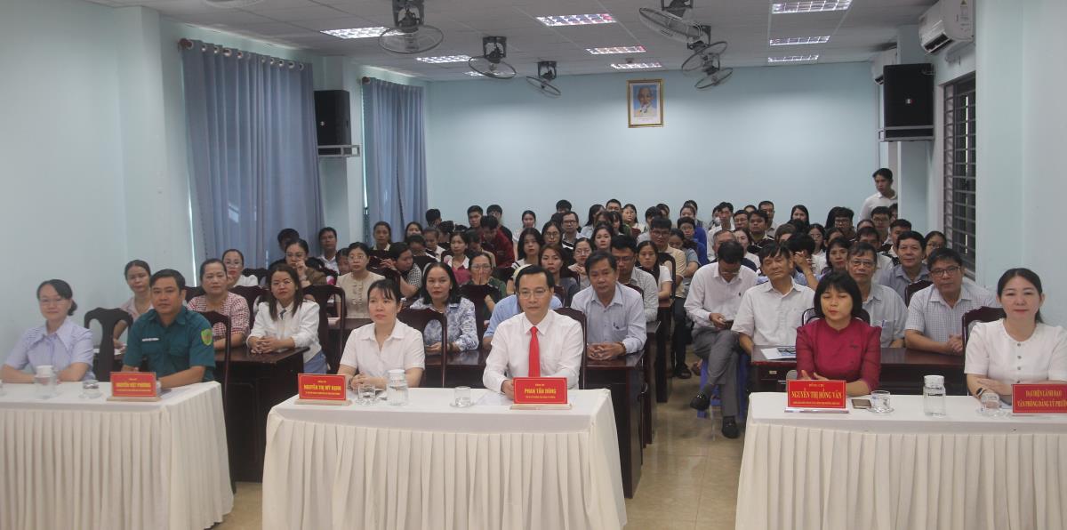 Lãnh đạo Đảng ủy phường An Khê và các học viên tham dự lễ khai giảng lớp bồi dưỡng nhận thức về Đảng.