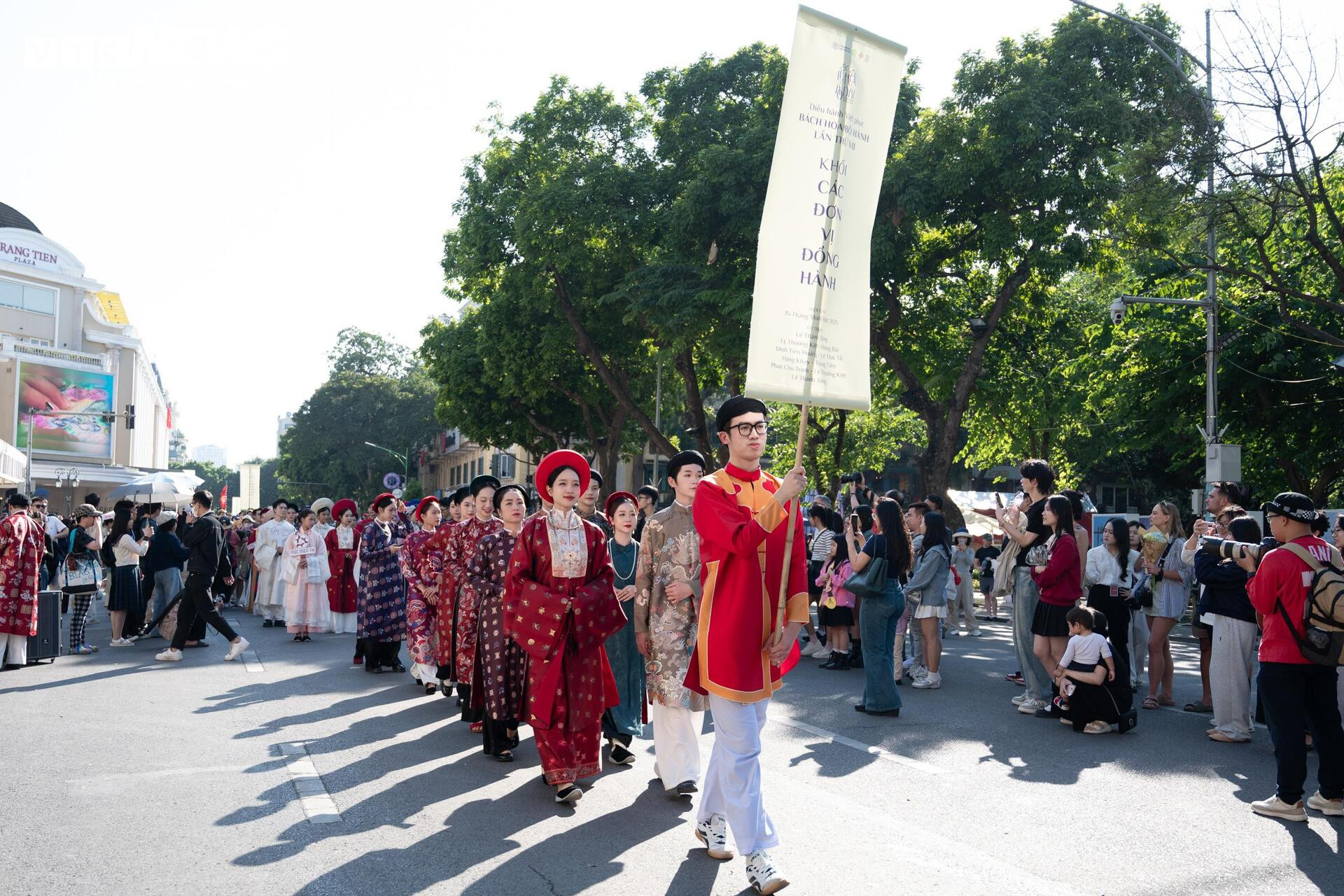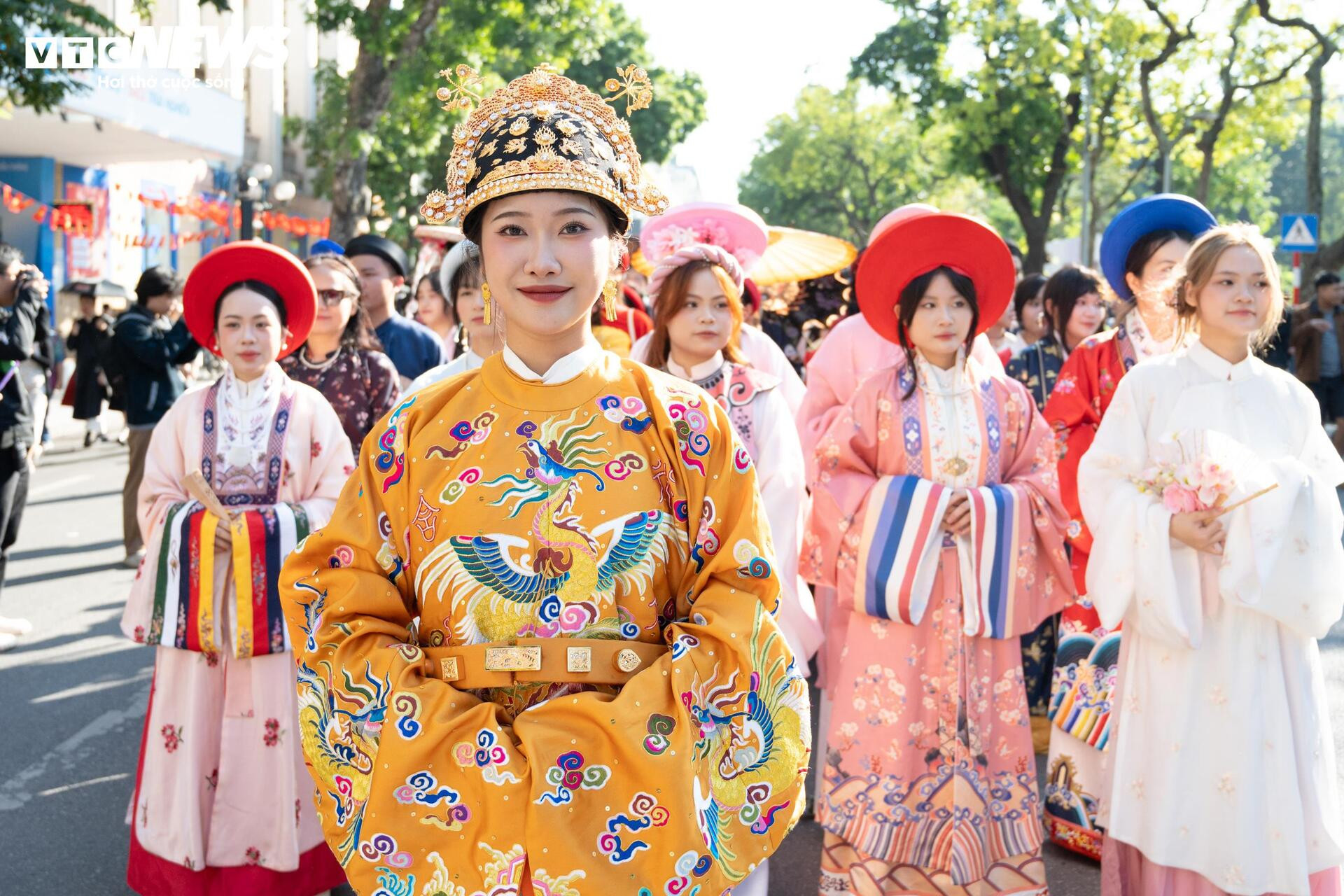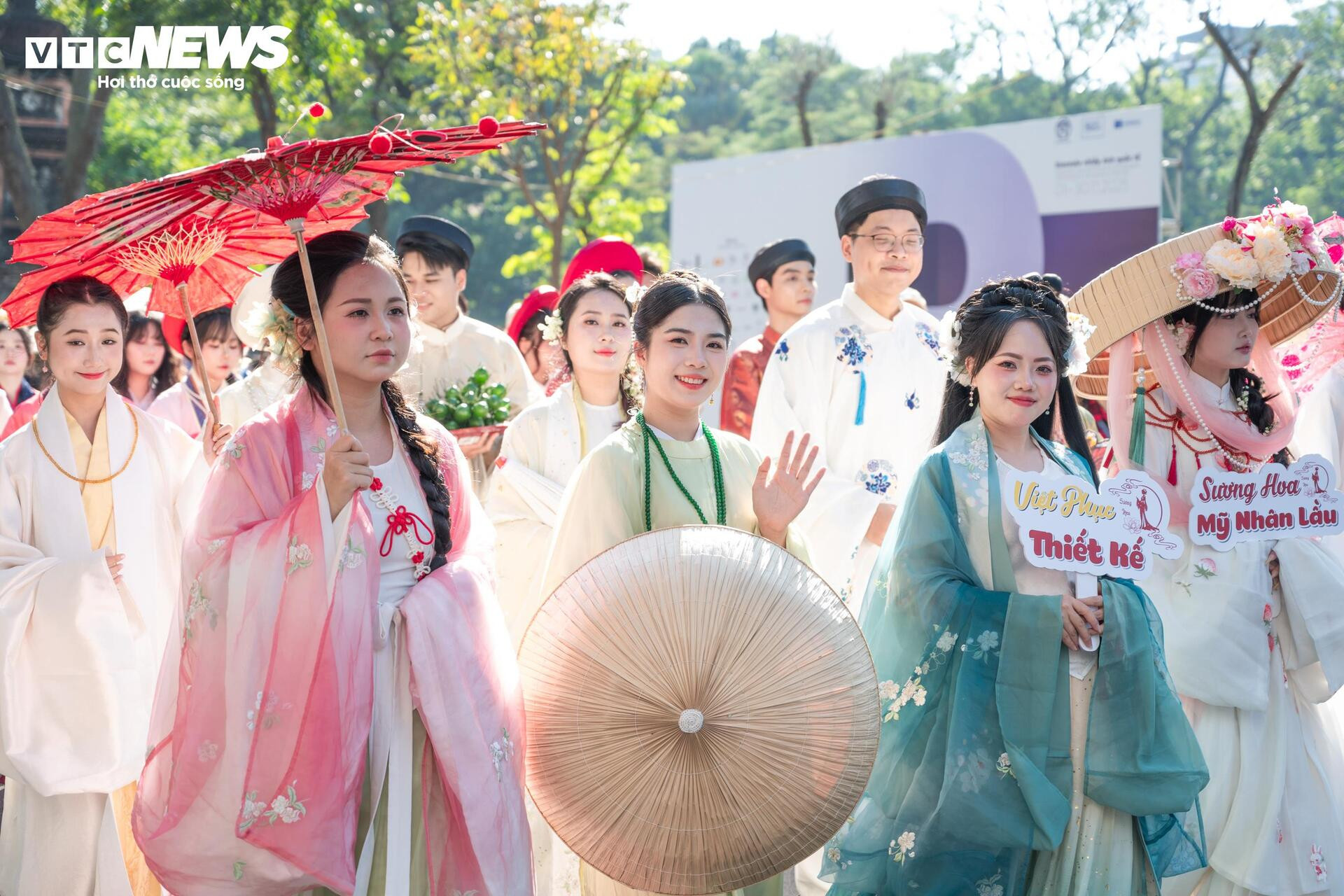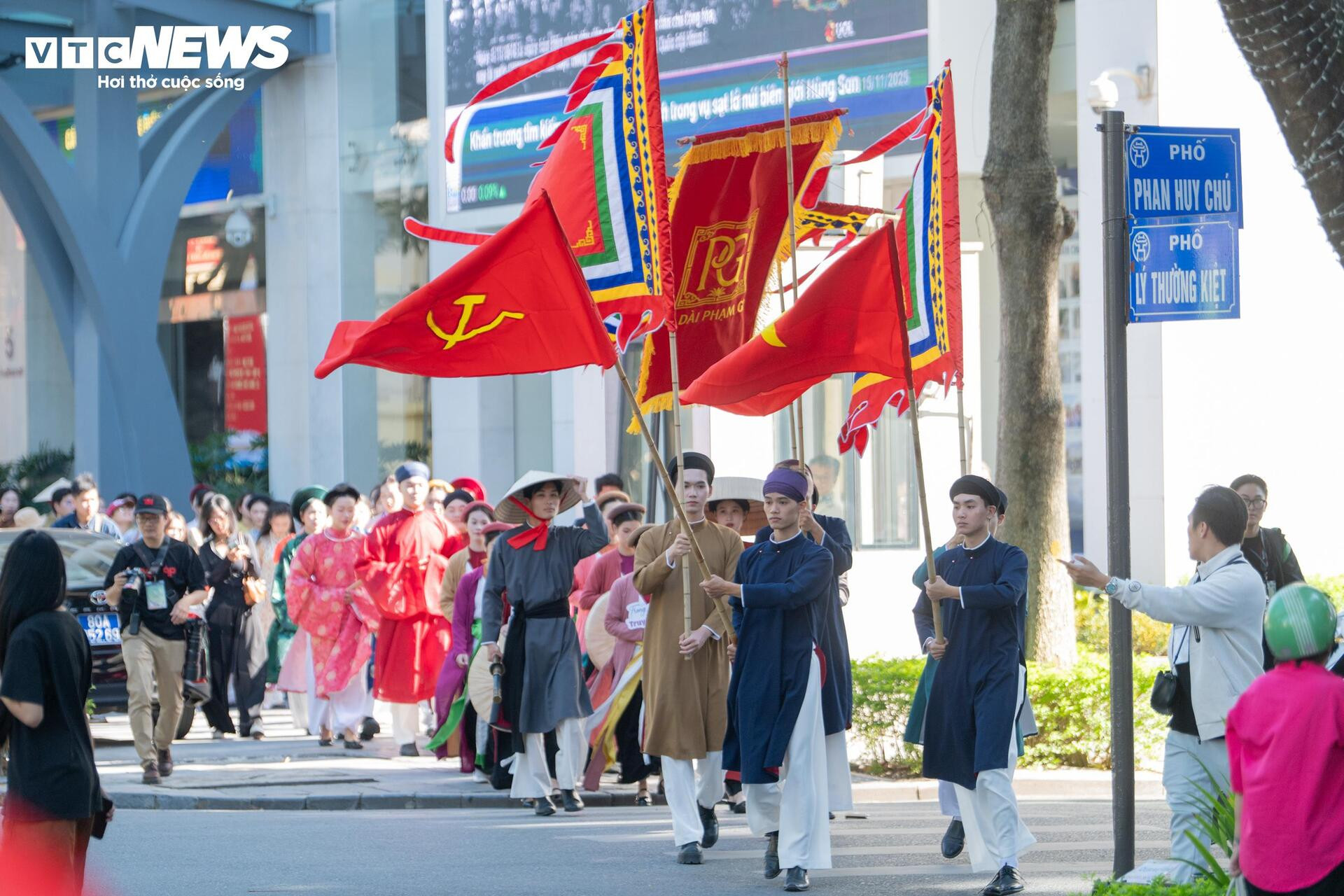 Đoàn diễu hành rực rỡ sắc màu truyền thống di chuyển qua các tuyến phố quanh Hồ Hoàn Kiếm và khu vực Quảng trường Đông Kinh Nghĩa Thục, tạo nên không gian văn hóa sống động giữa mùa thu Hà Nội.